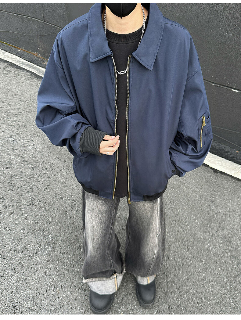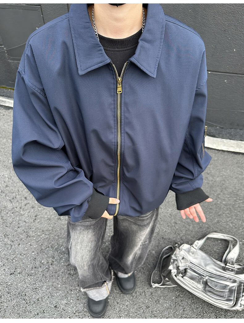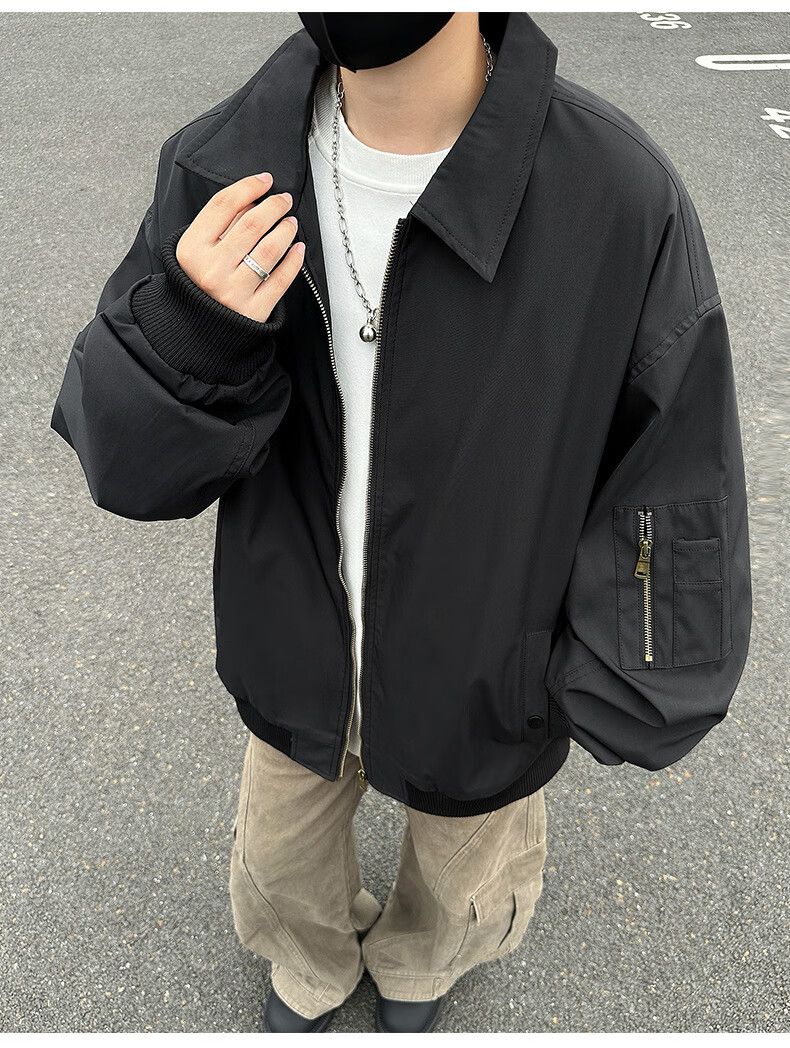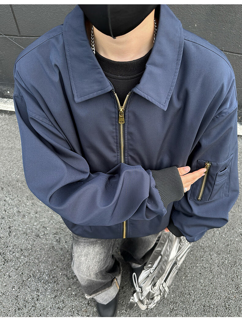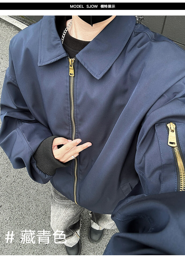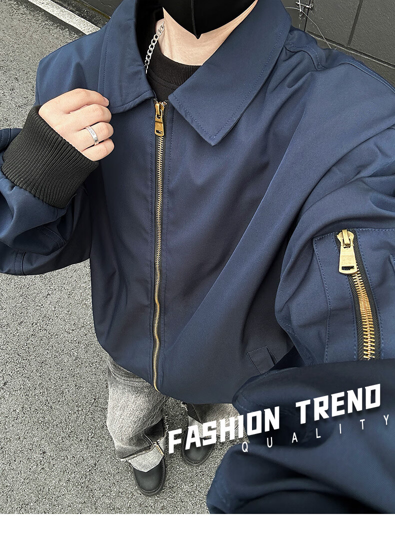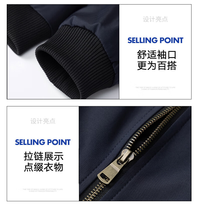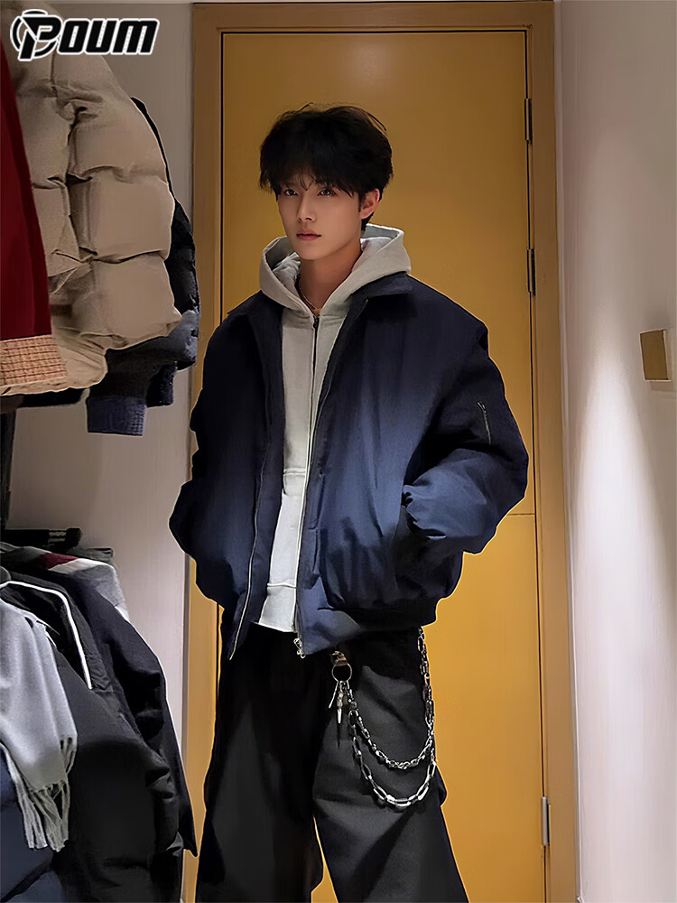 POUM American bomber jacket men's winter velvet thickened warm baseball uniform 26185M Navy M