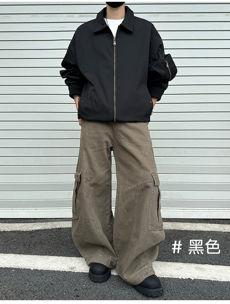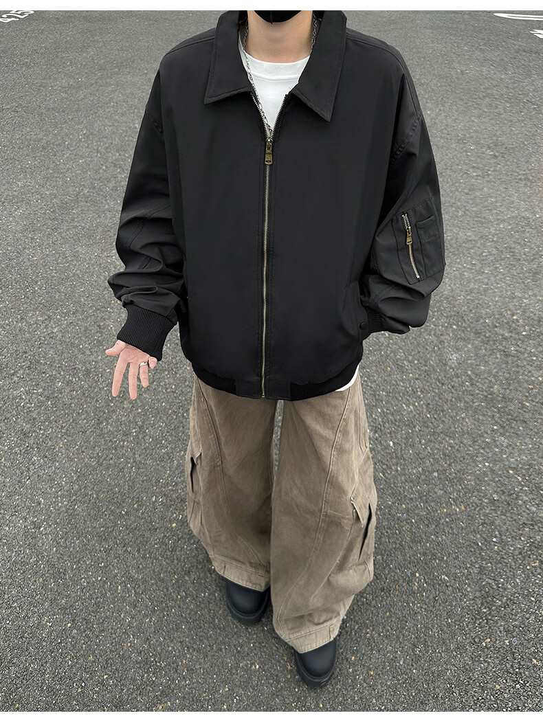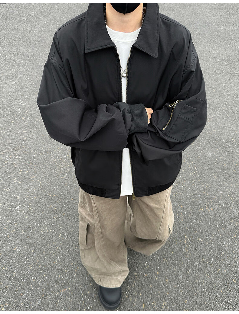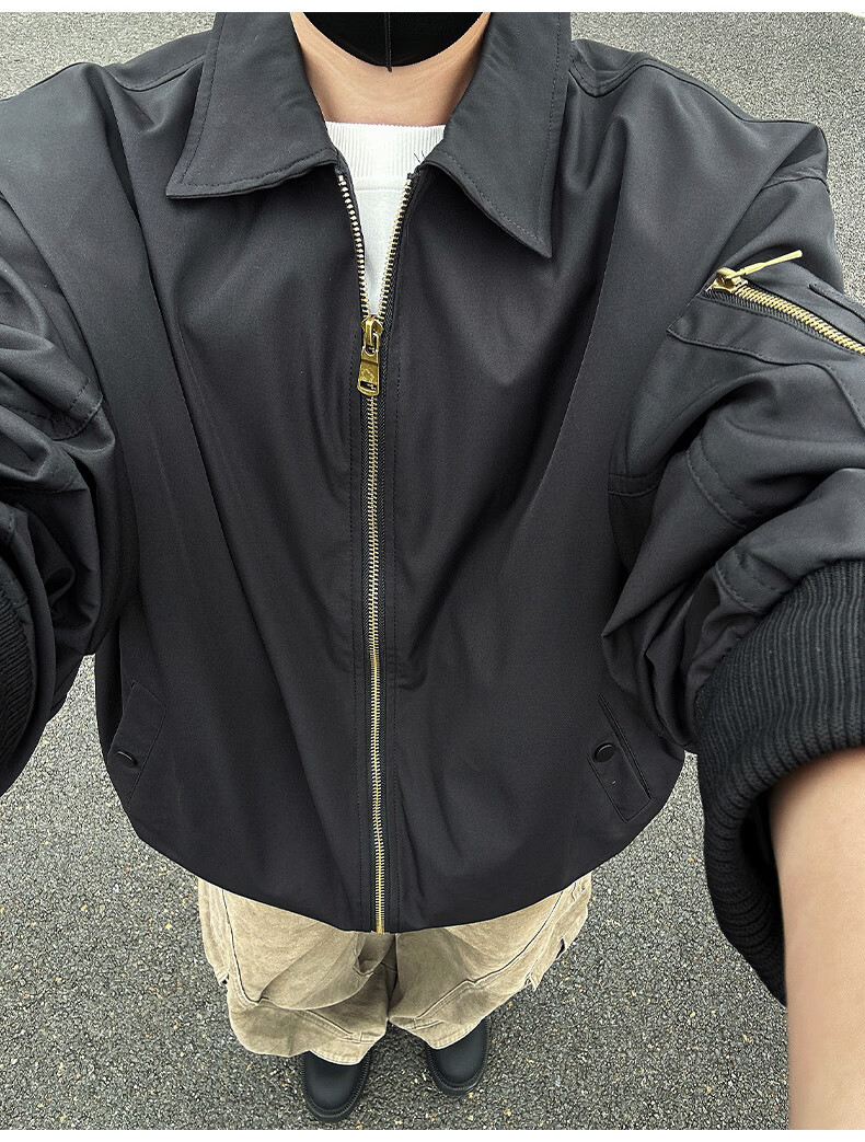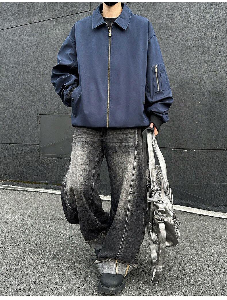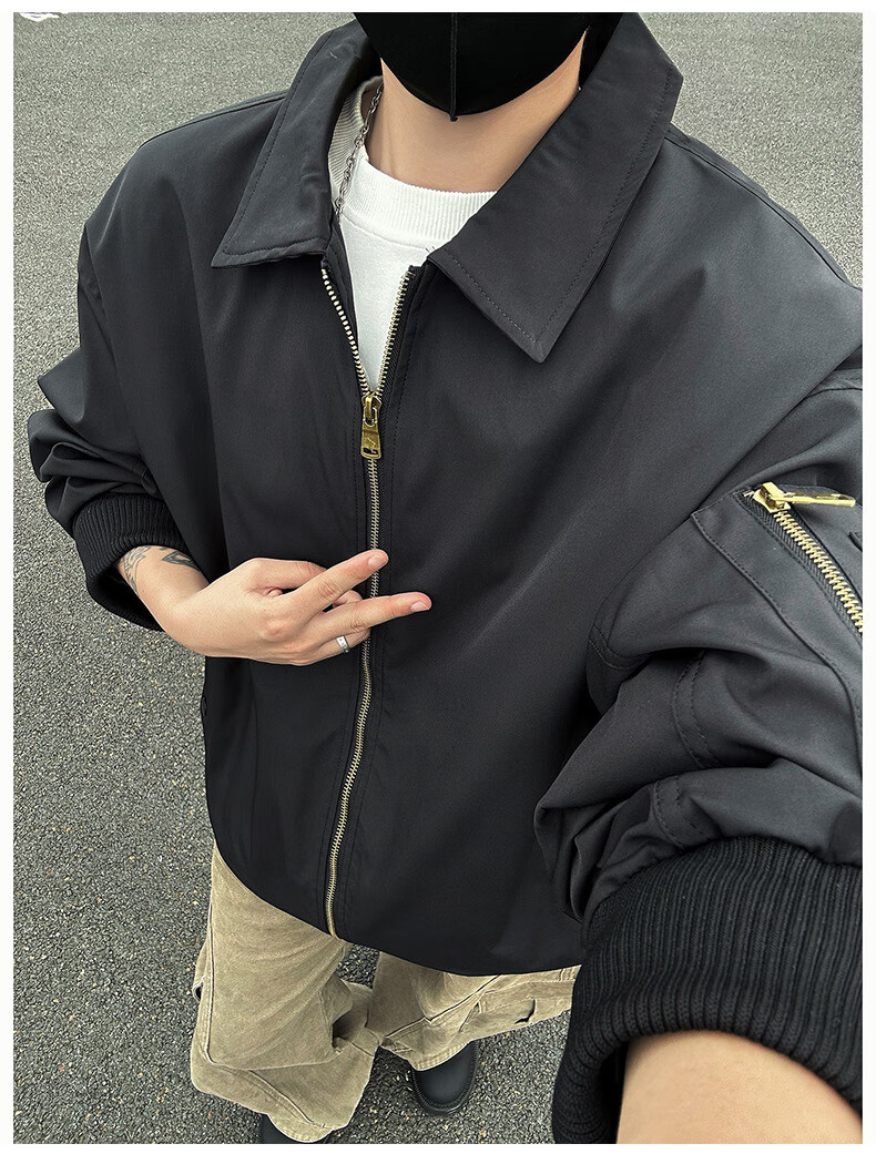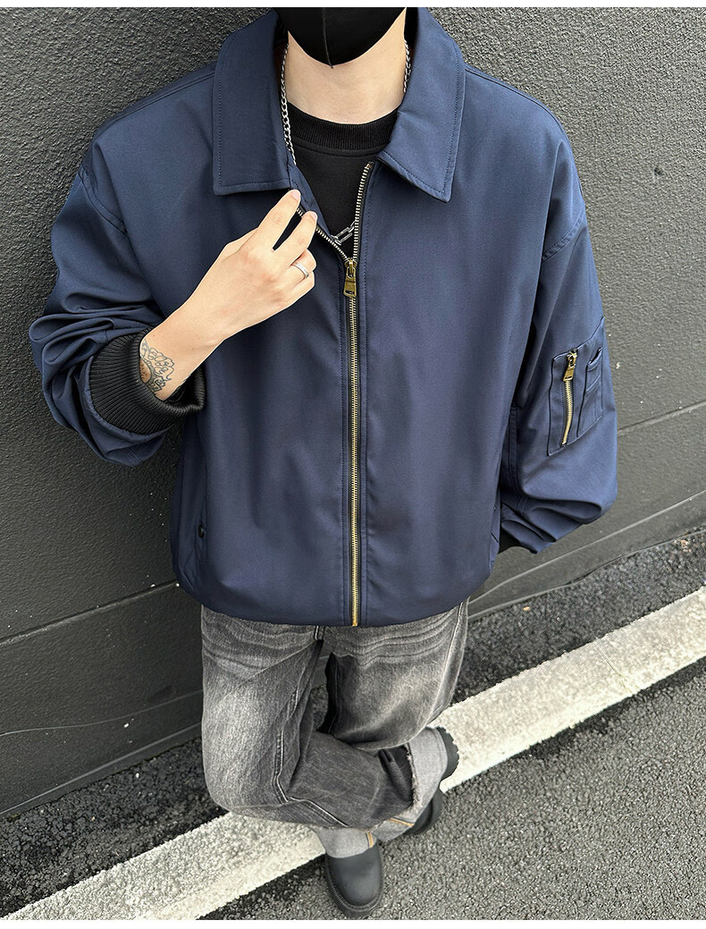 POUM American bomber jacket men's winter velvet thickened warm baseball uniform 26185M Navy M