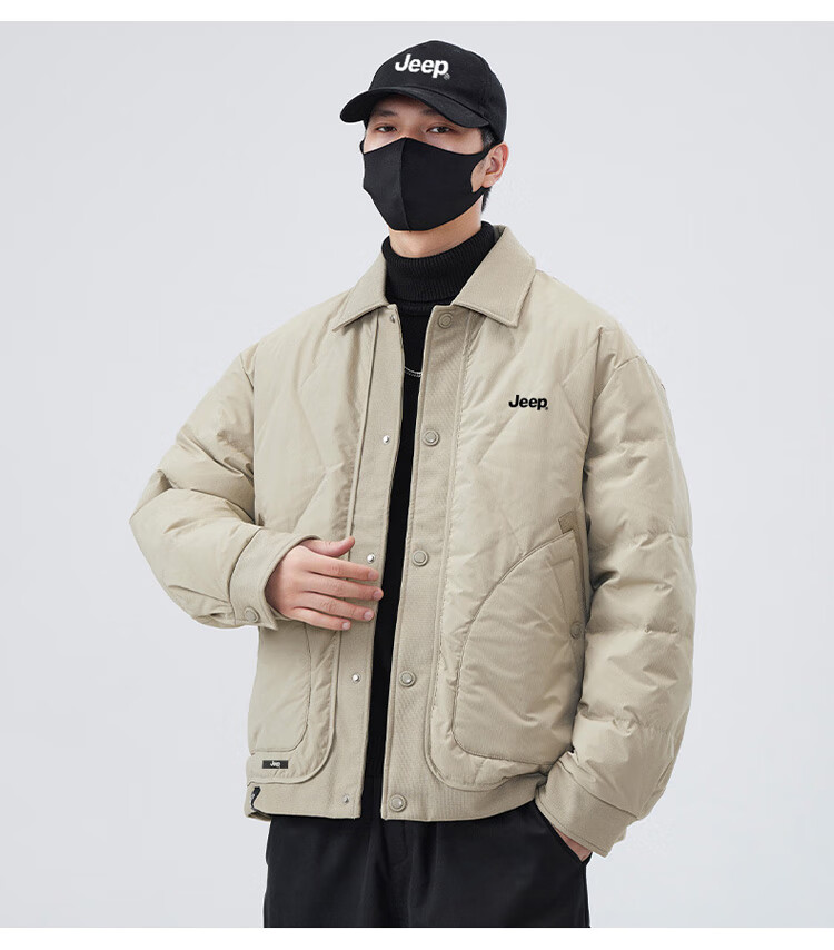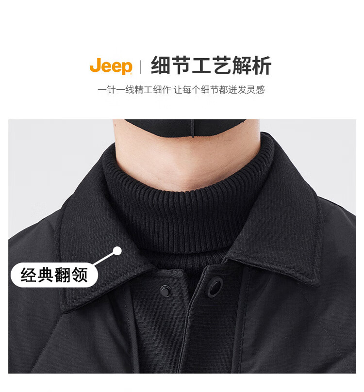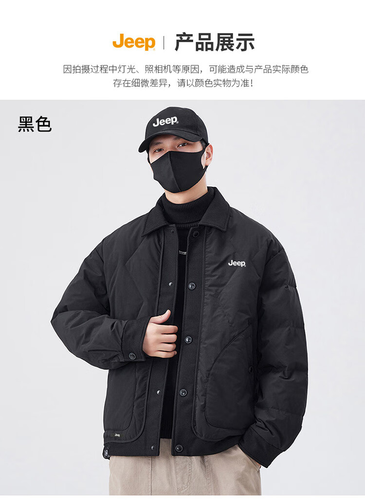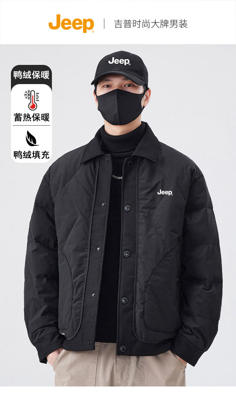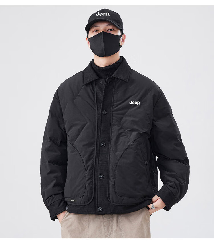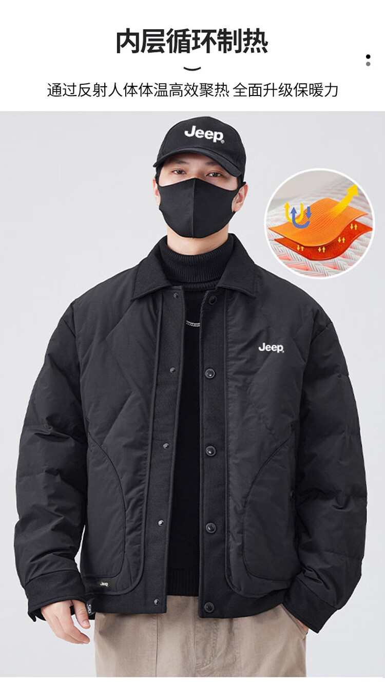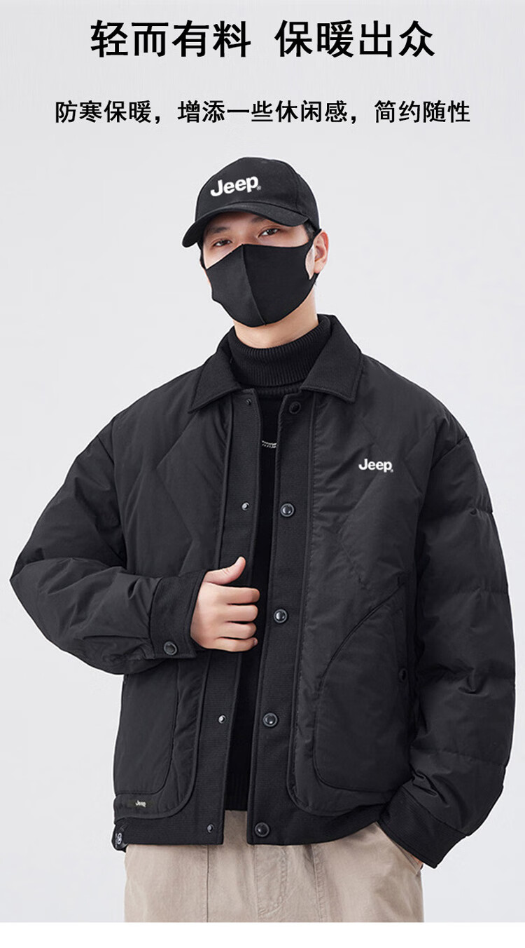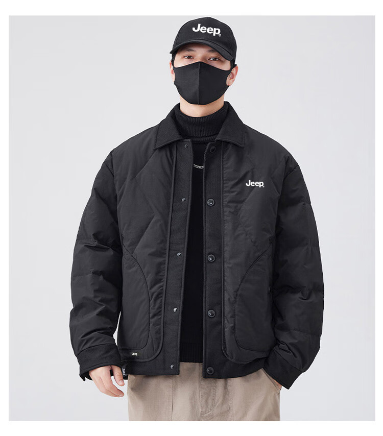 JEEP Jeep Down Jacket Men's Winter Short Warm Lapel Jacket Men's Casual Clothes Men's Black XL