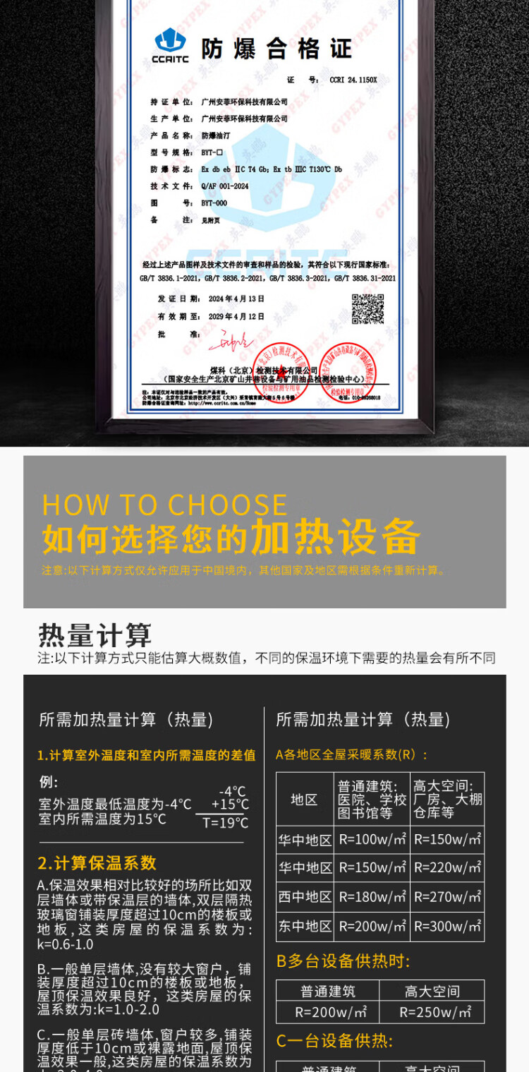 Yingpeng (GYPEX) explosion-proof oil heater type, suitable for industrial explosion-proof PTC heating fan BYT-36EX-HNF in laboratories, chemical plants, pharmaceutical factories, breeding farms, etc.
