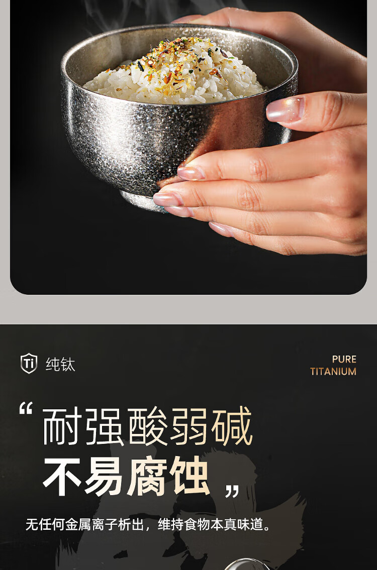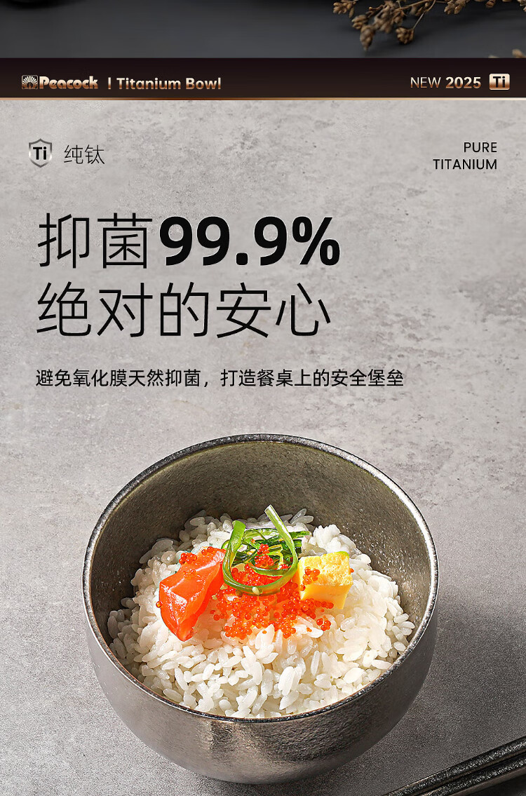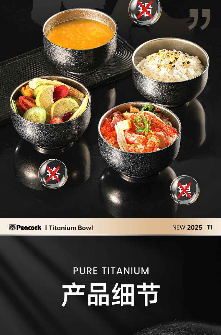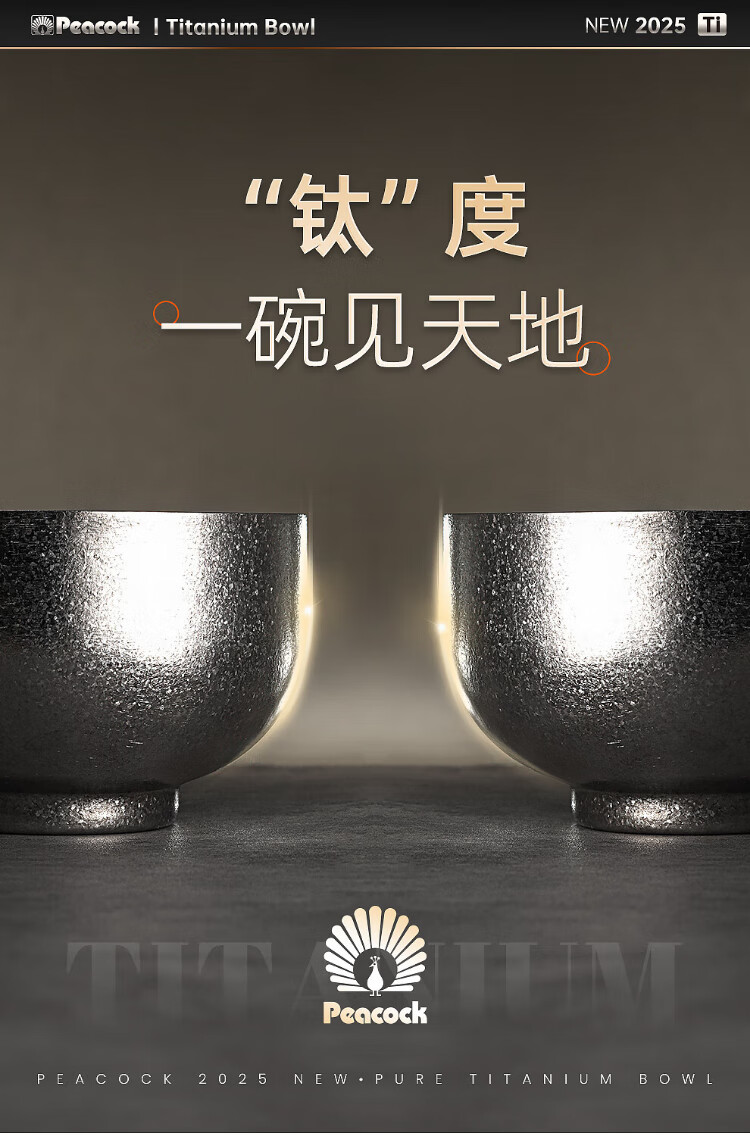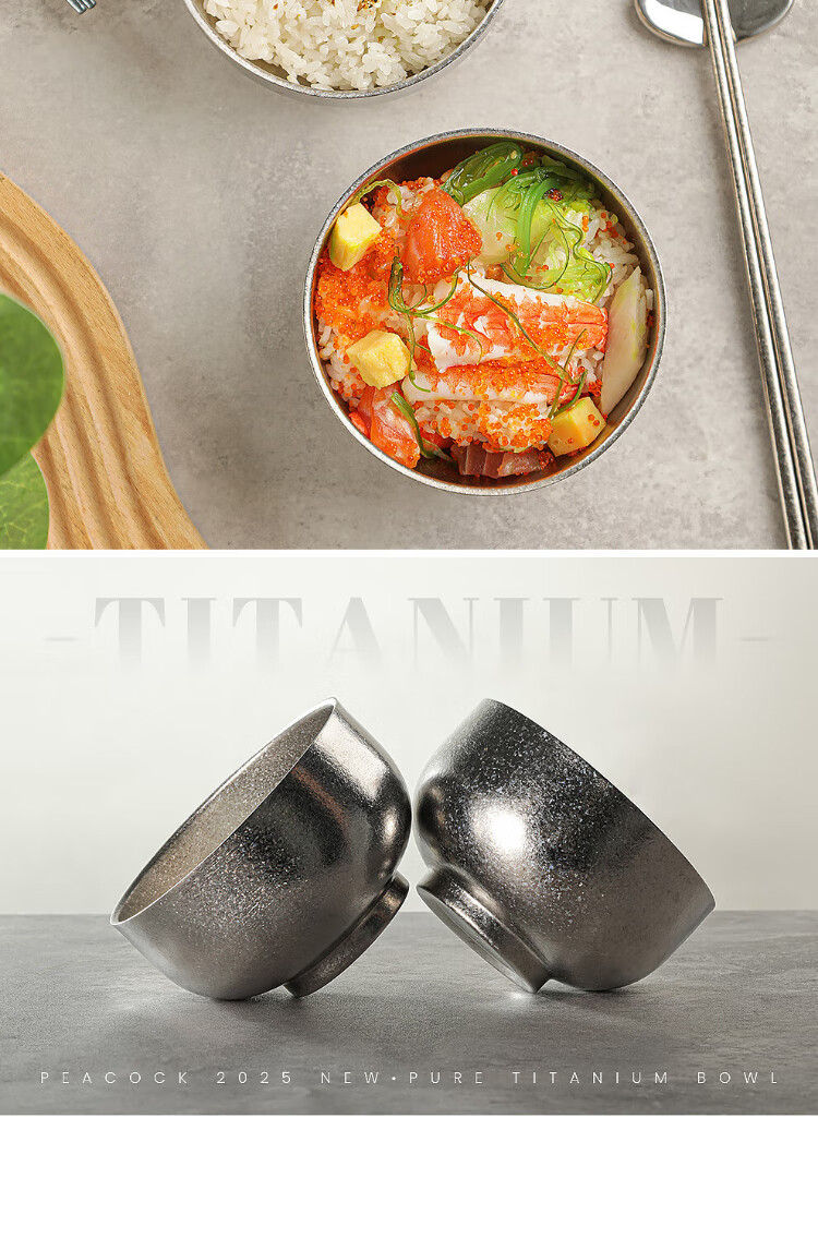 Peacock pure titanium tableware rice bowl soup bowl high-end titanium bowl household silver 380ml