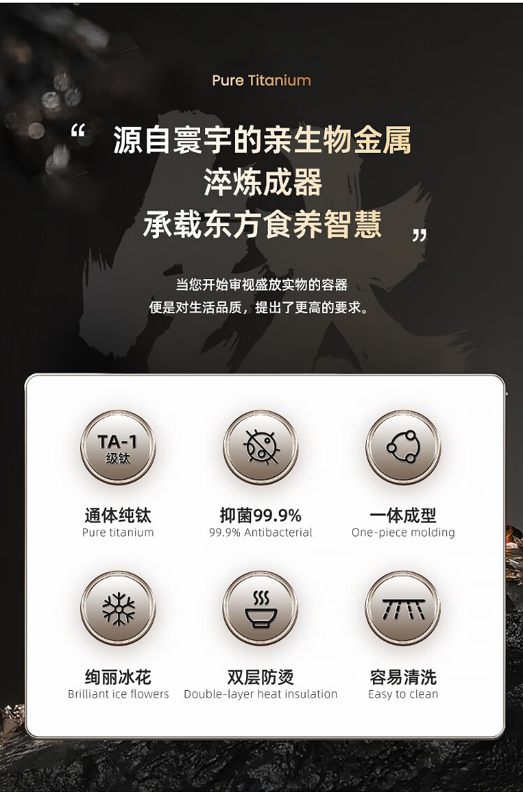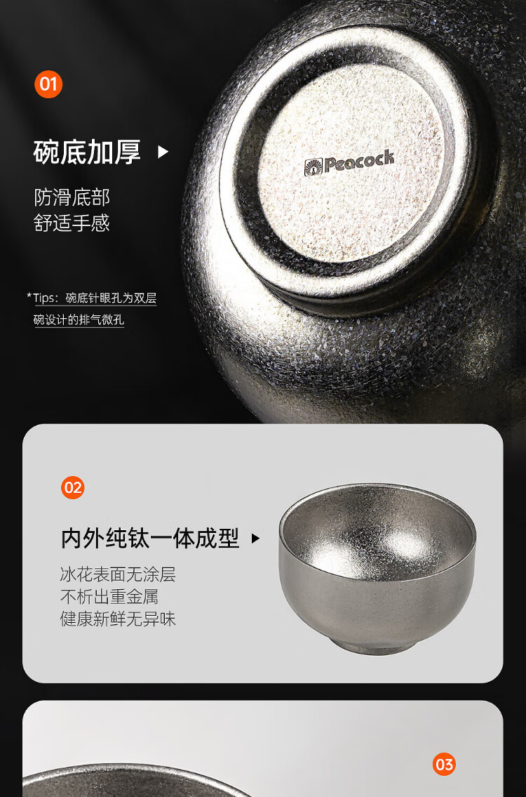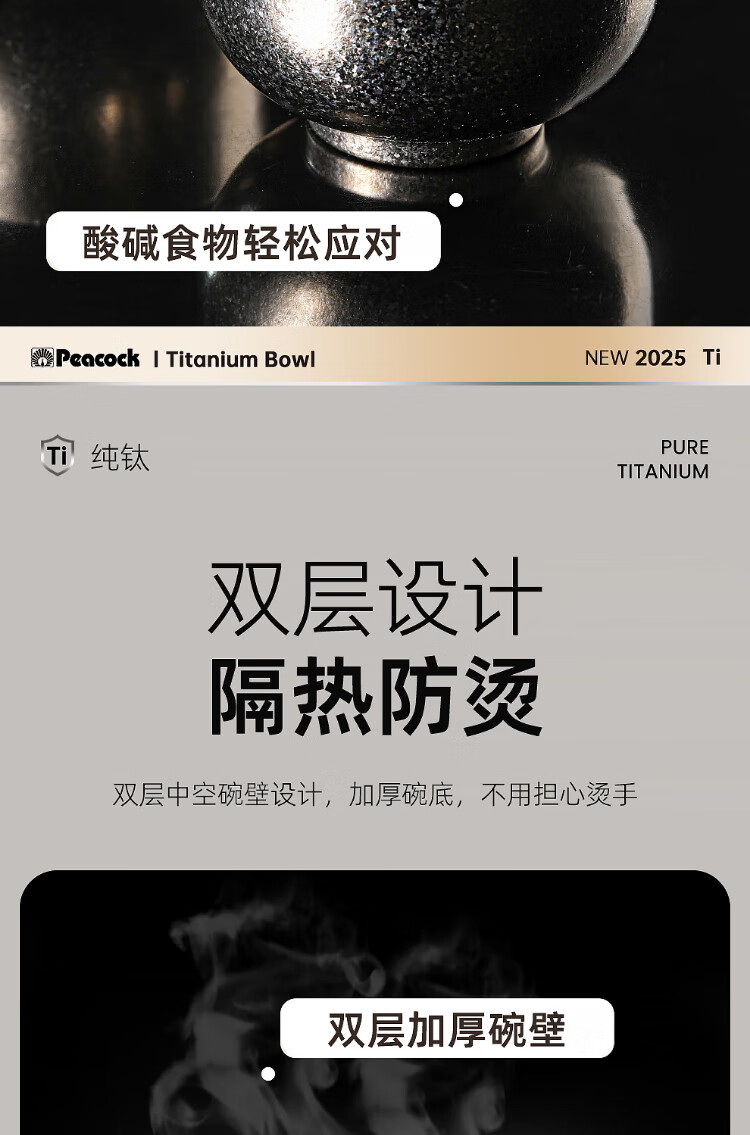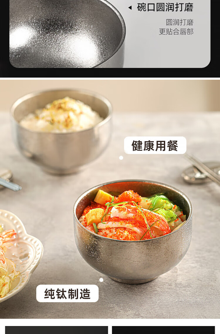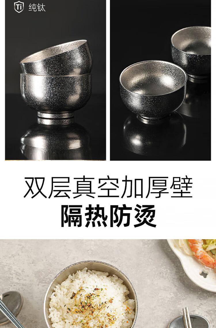 Peacock pure titanium tableware rice bowl soup bowl high-end titanium bowl household silver 380ml