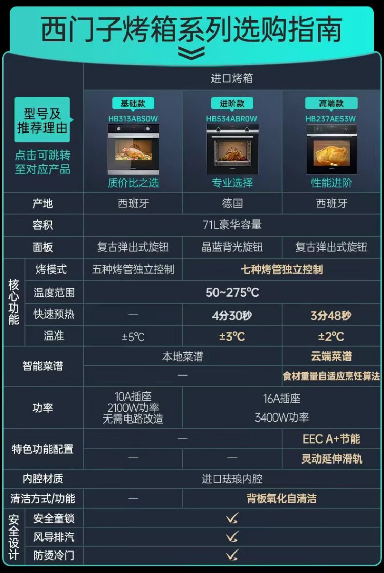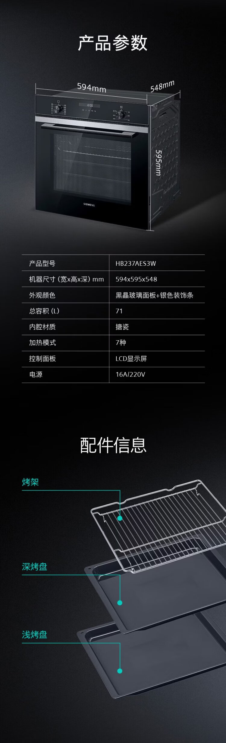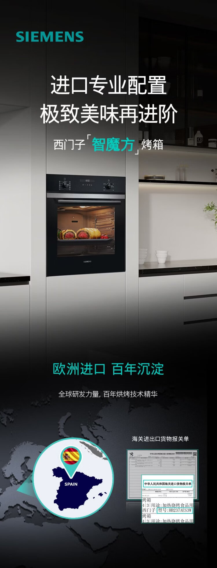SIEMENS imported from Spain Smart Cube Master Oven 71L built-in electric oven 2 degrees temperature control pure oven self-cleaning baking home HB237AES3W