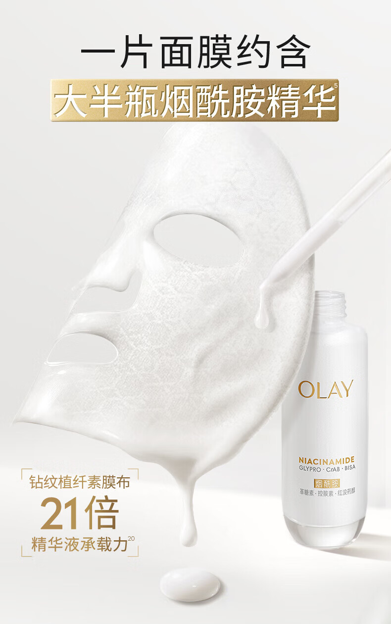 Olay (OLAY) new hydrating white bottle mask 15 pieces, hydrating, whitening, removing yellowing, brightening skin tone, improving dullness, gift without box