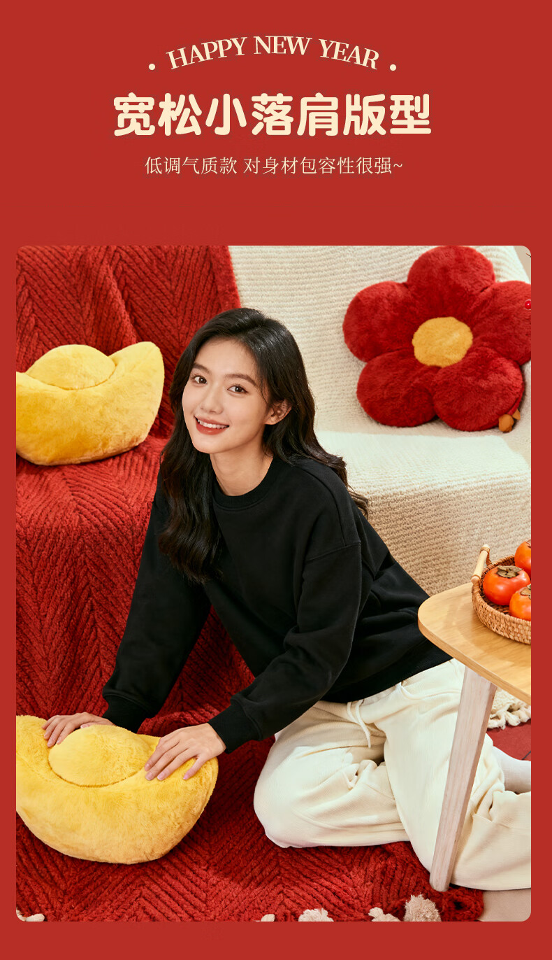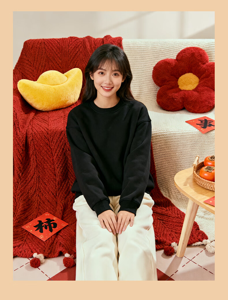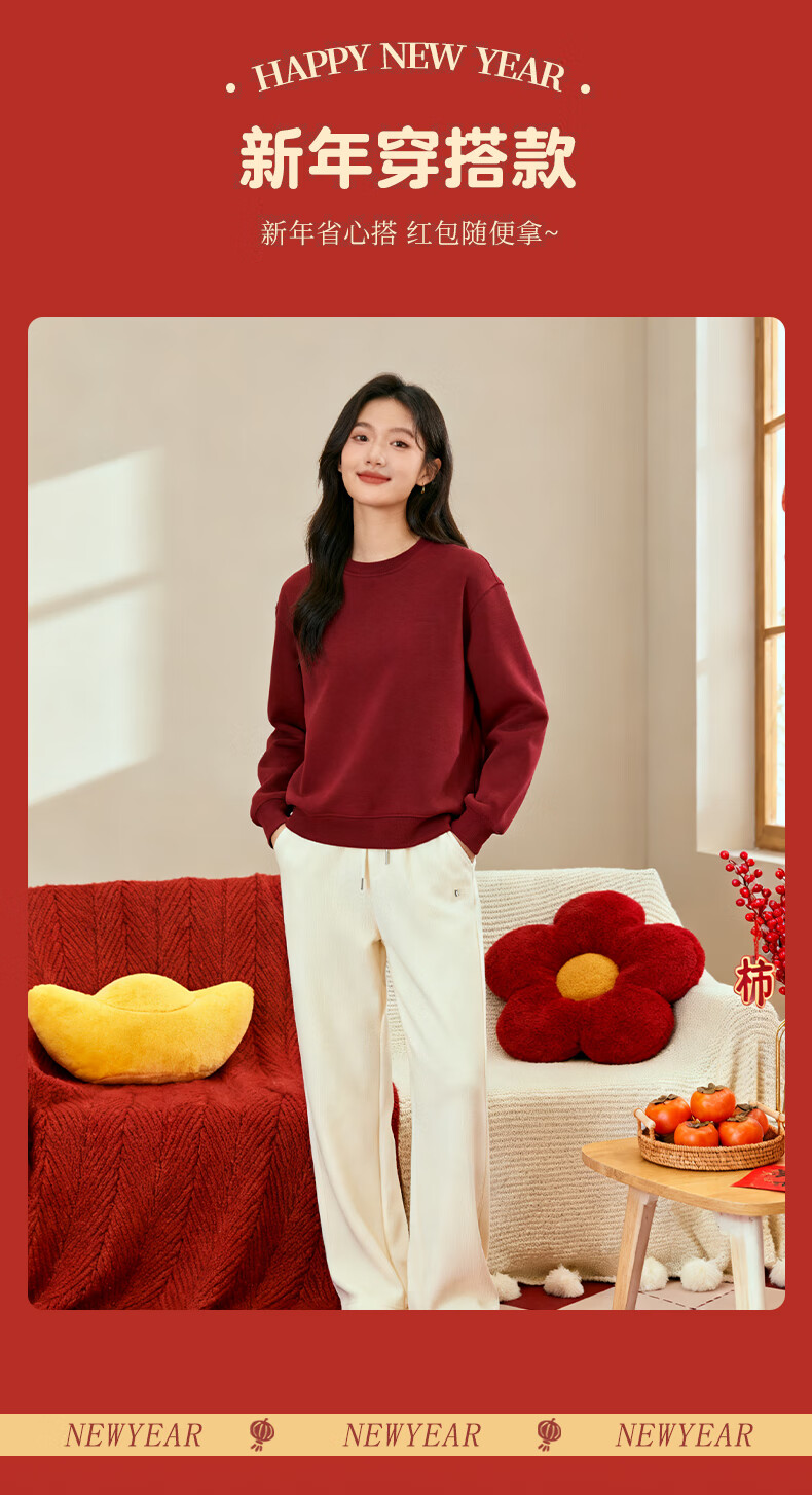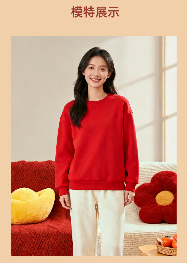Baleno red sweatshirt for women plus velvet warm large size long sleeve women's 2026 Year of the Horse animal year clothes New Year's inner top for women