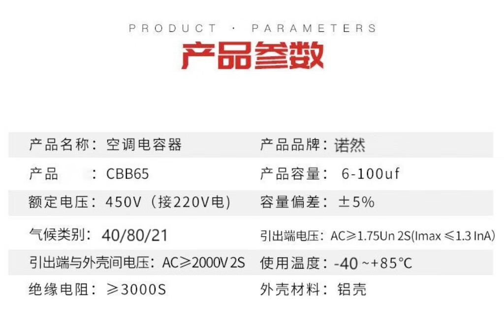 Noran universal CBB65 450V 35uF air conditioning capacitor compressor starting capacitor aluminum shell explosion-proof type 1 piece