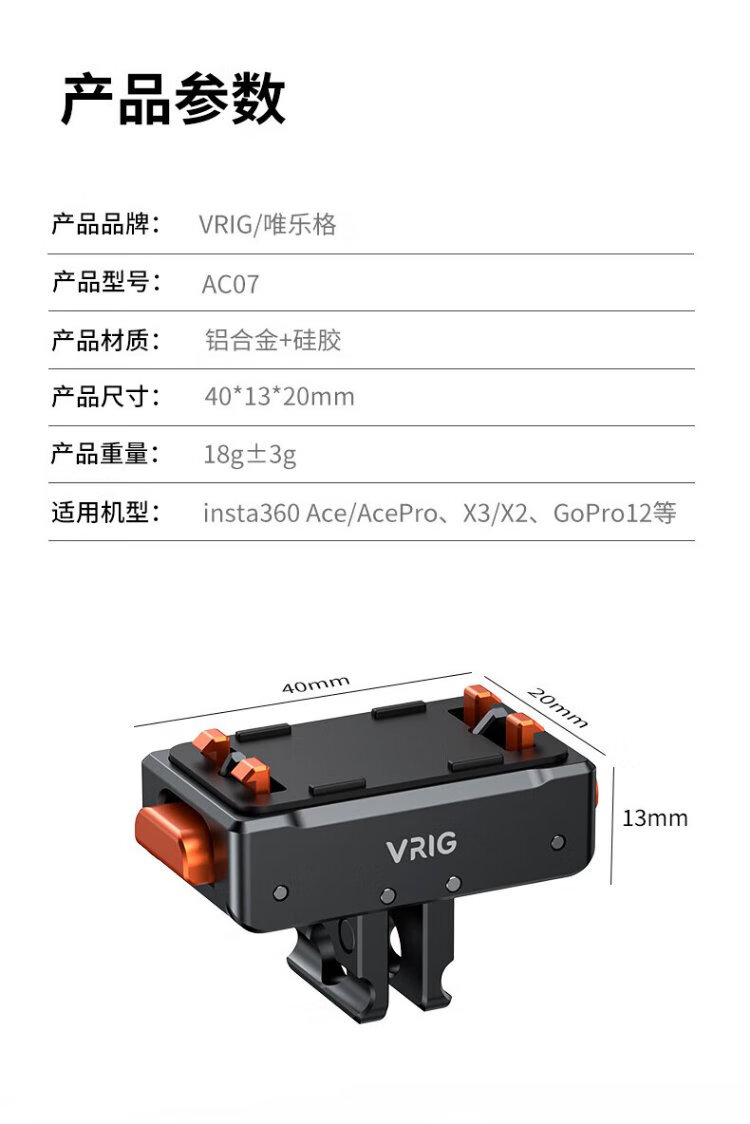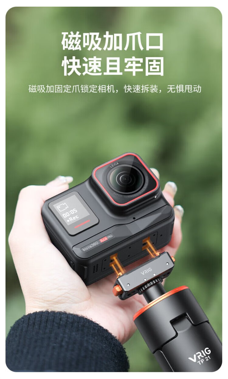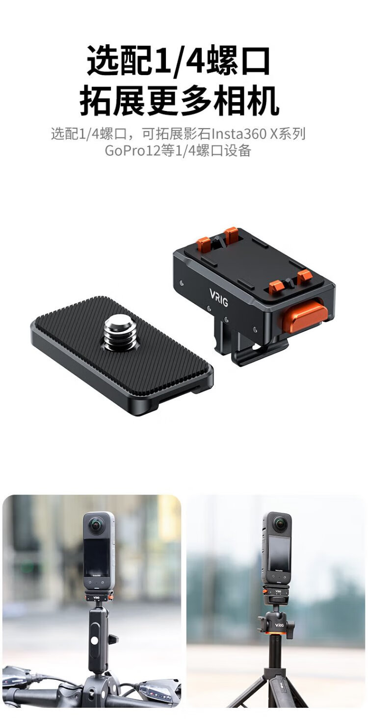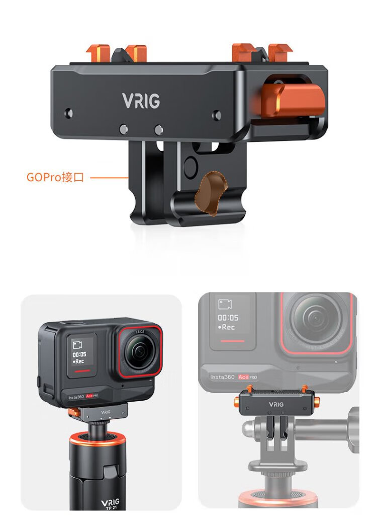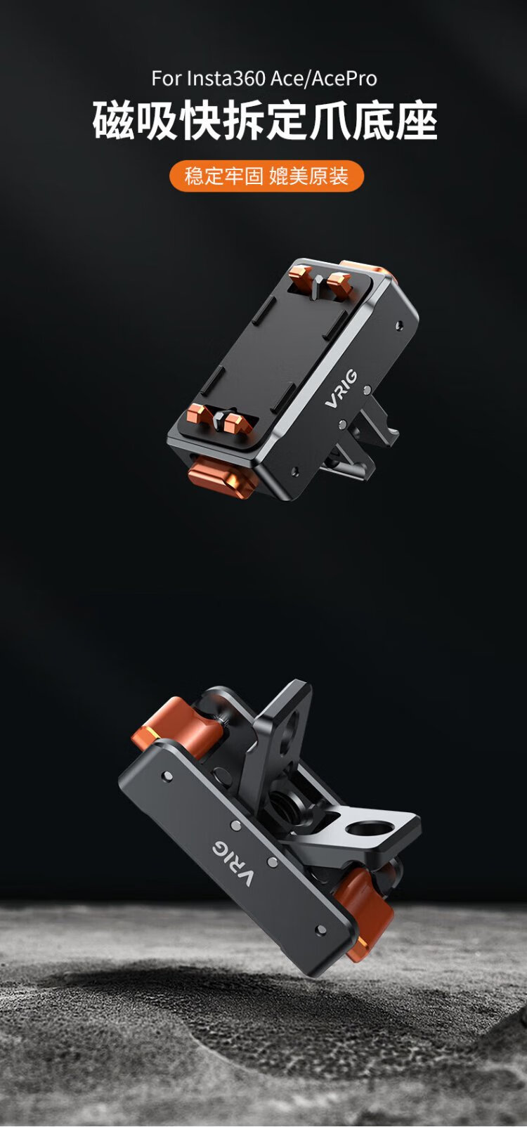 VRIG AC-10 Shadow Stone Insta360 Ace Pro2 Accessories Ace Magnetic Quick Installation Quick Release Adapter Base Metal x3 Two Claw Screws x4/x5 Action Camera Tripod Accessories