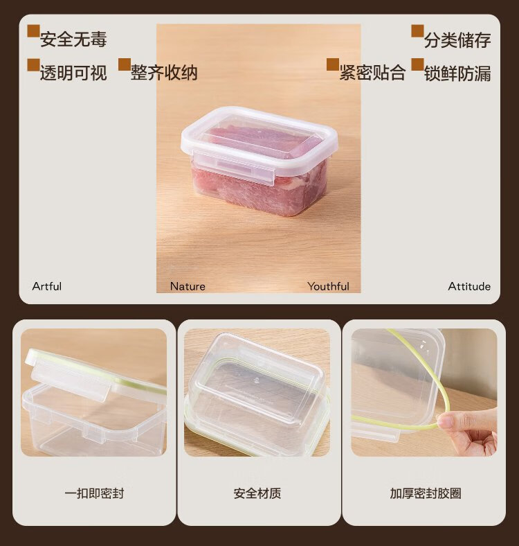 Jiacube single-buckle sealed fresh-keeping box with lid, transparent refrigerator storage box, food-grade frozen meat, fruit and vegetable packaging box, small size 2