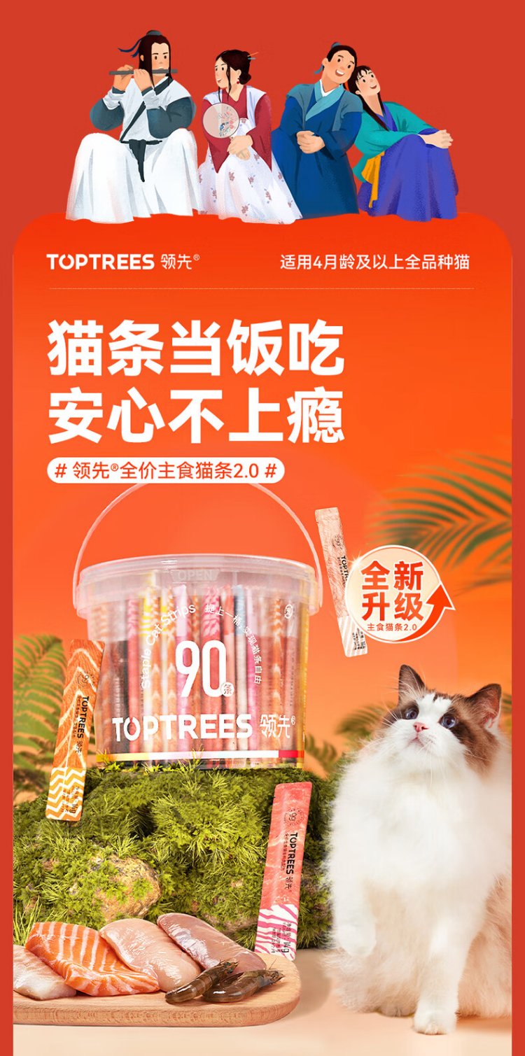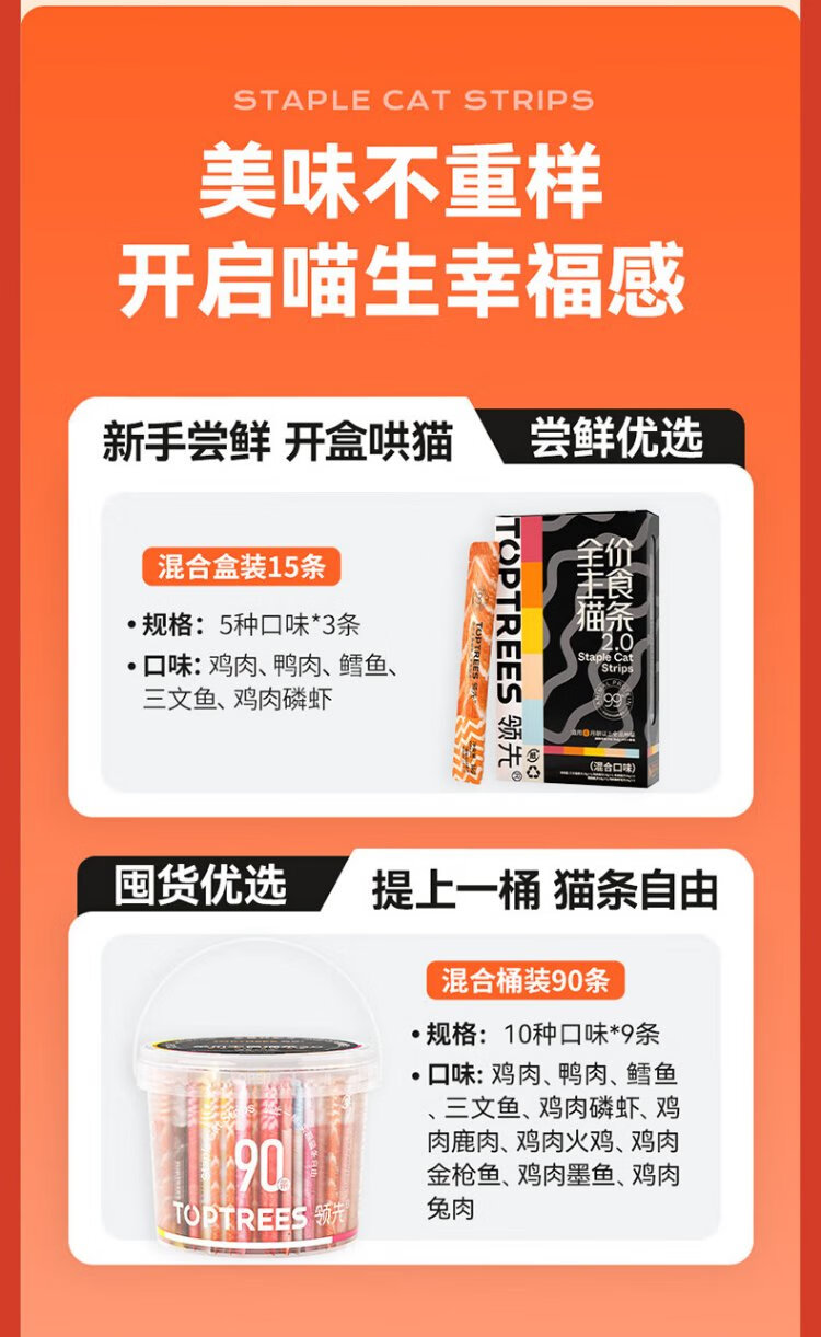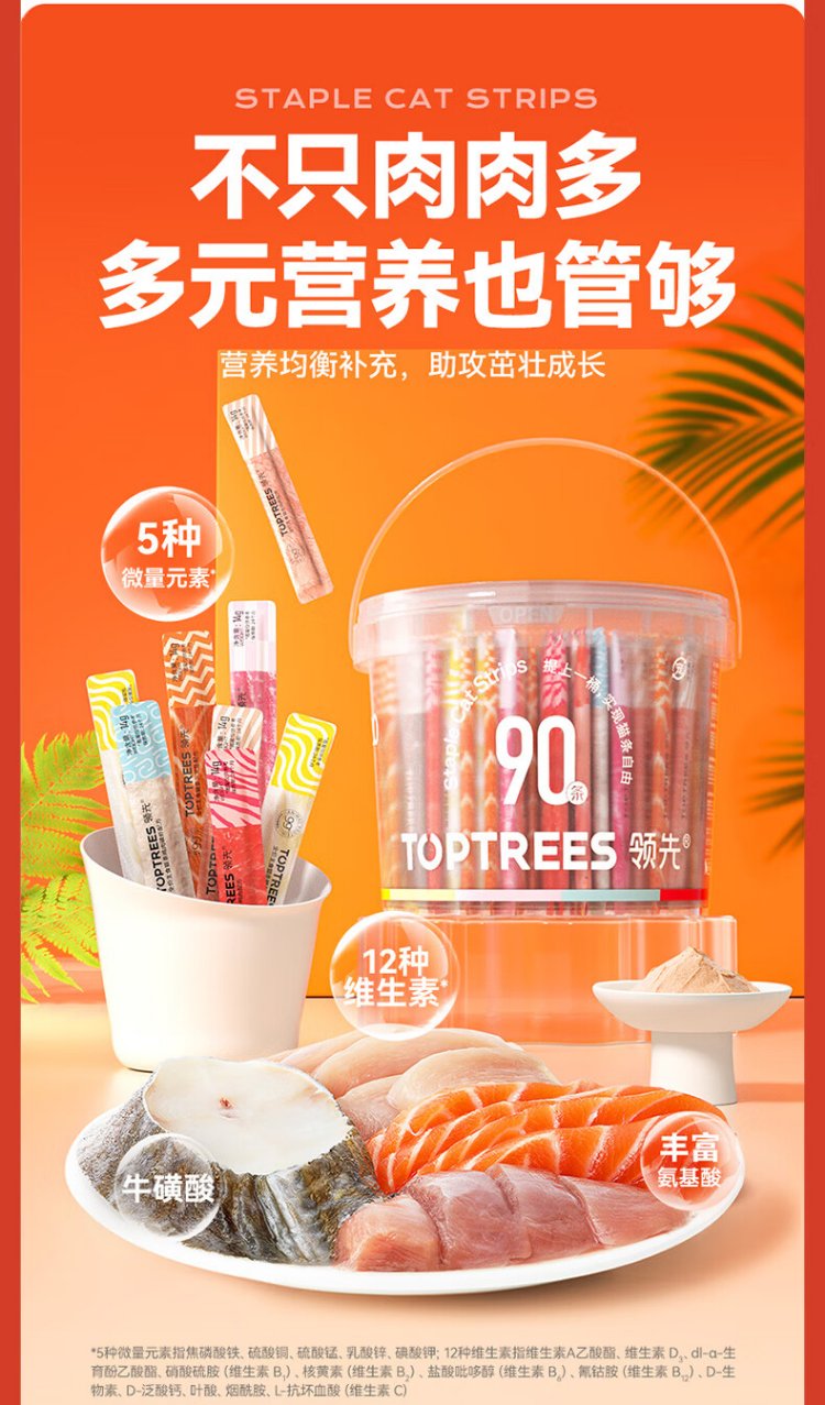 Leading staple food cat strip bucket 14g*180 (2 buckets) adult and kitten canned cat food, wet food snacks, nutritional hydration