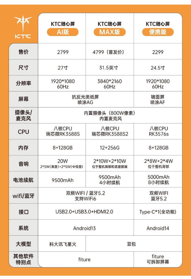 KTC Best Friend Machine Pro Xpress Screen 31.5-inch 4K Smart Screen Rhine Eye Protection 12GB+256GB Flat Display Touch Lift Rotating Movable TV A32Q7 MAX