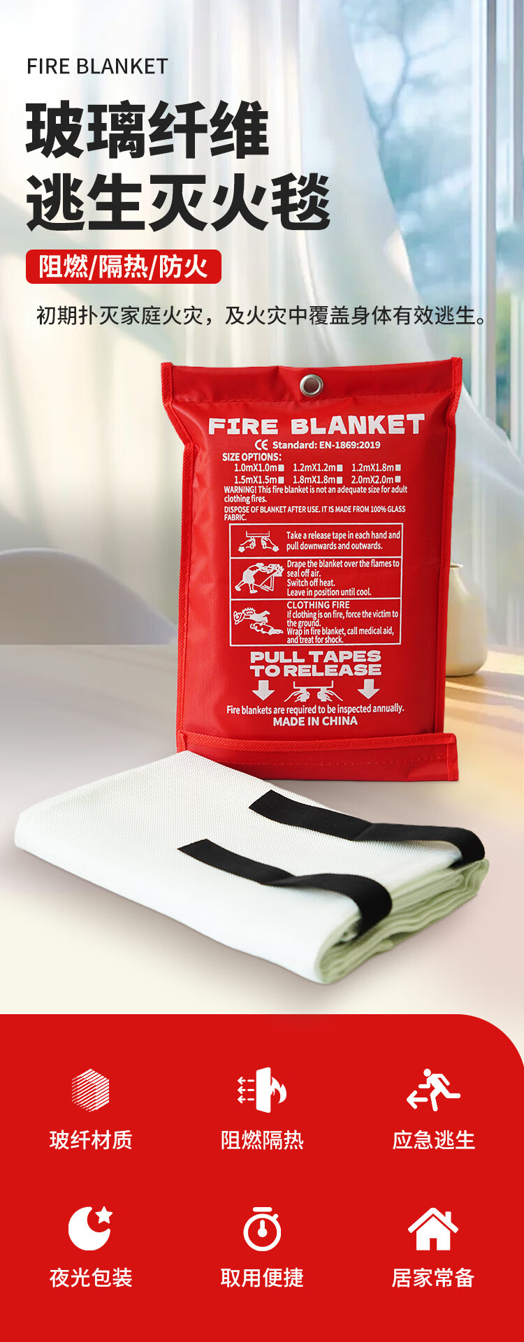 Beifute fire blanket 1.5*1.5mCE certified fiberglass fire blanket fire-fighting special factory gas station emergency fire escape fire blanket thermal insulation and flame retardant