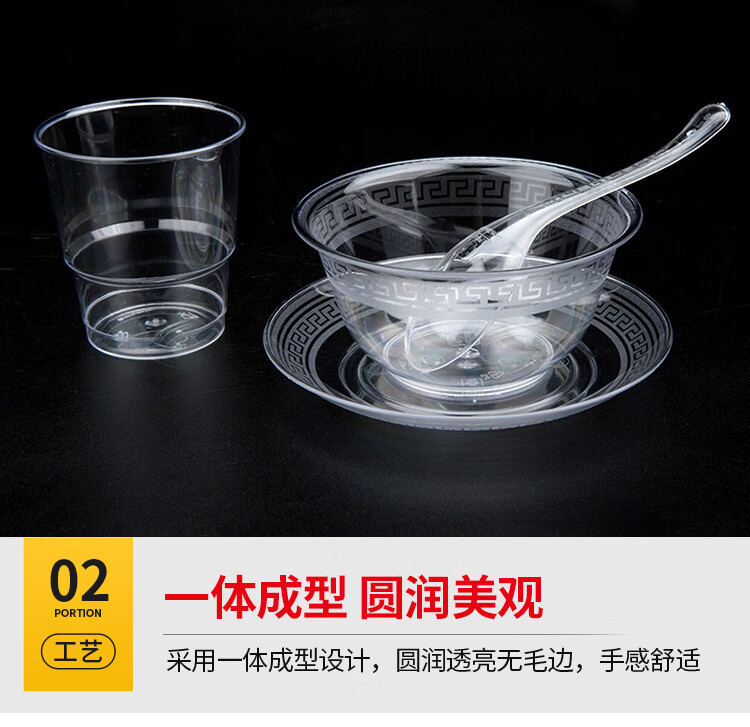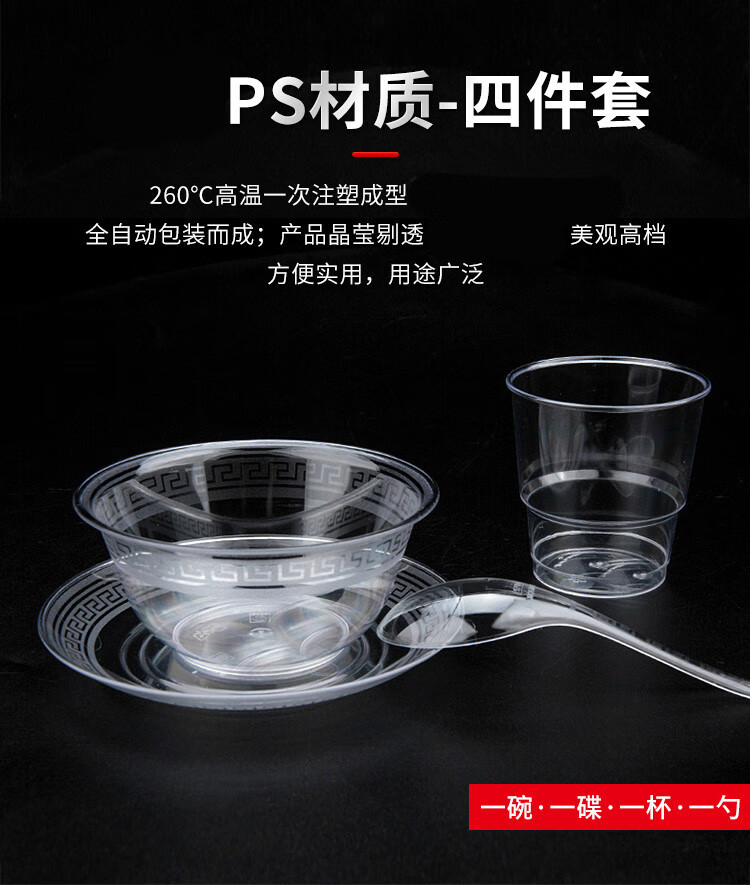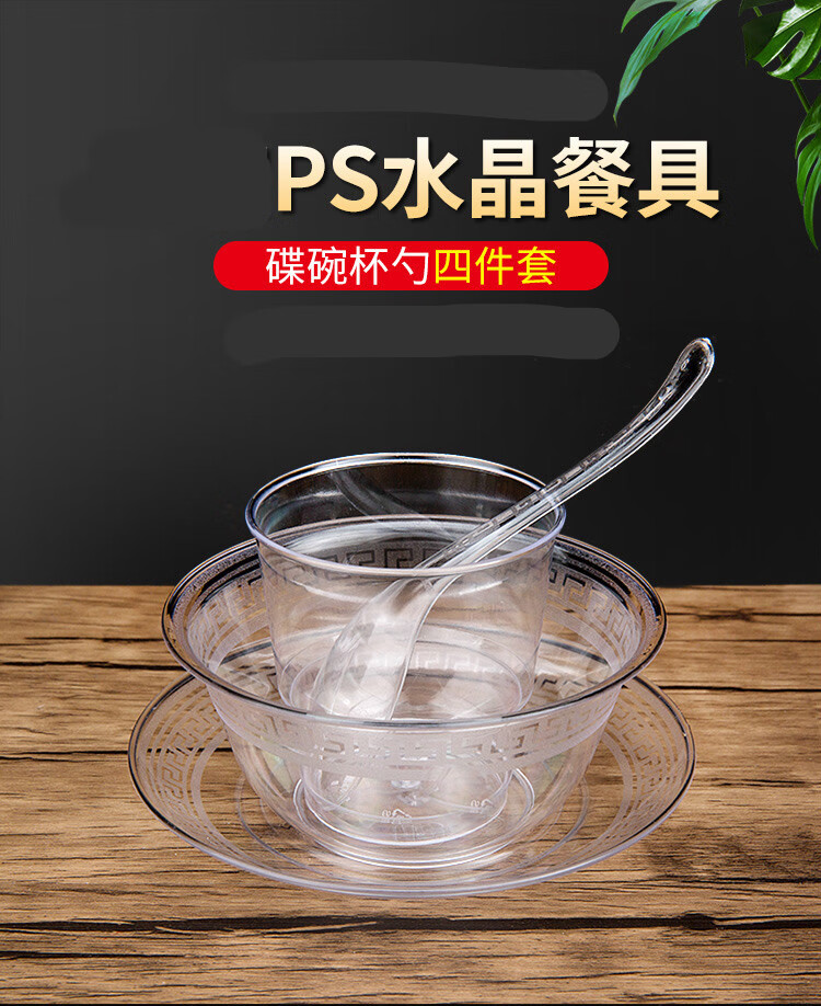 Zi Jiafu JD Sufa disposable tableware thickened bowls and chopsticks set plate chopsticks banquet household tableware four-piece set crystal dishes 200 pieces