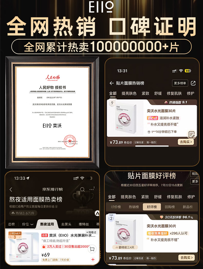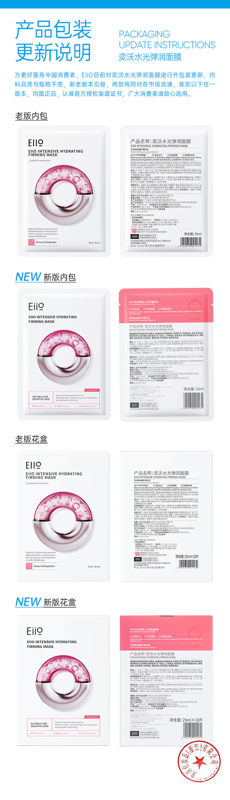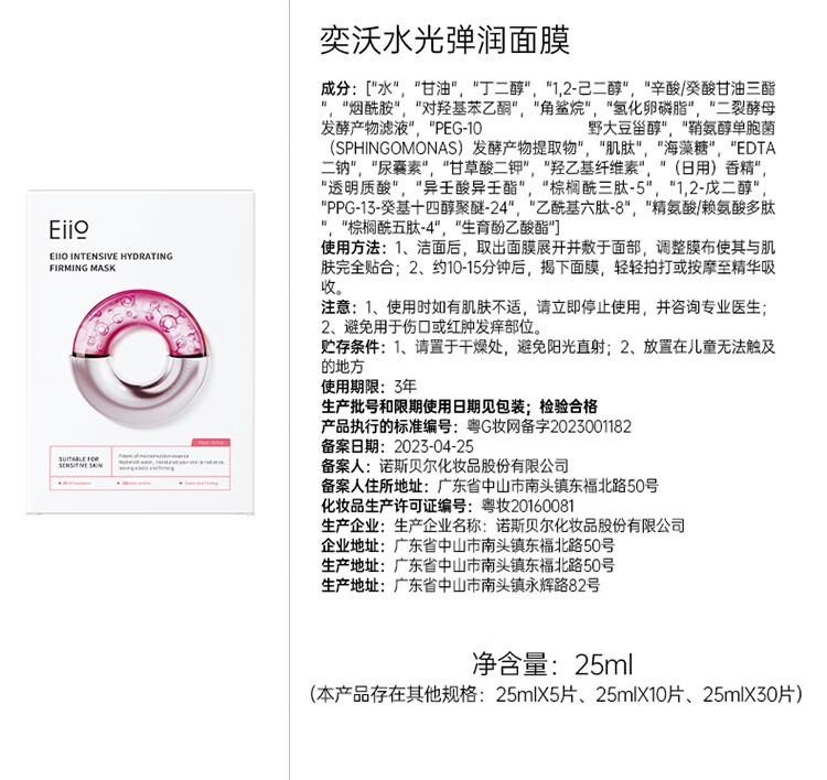 EIIO Hydrating and Elastic Moisturizing Mask 50 Pieces Brightening and Anti-Yellowing Patch Mask Firming and Repairing Late Night Skin Gift ello