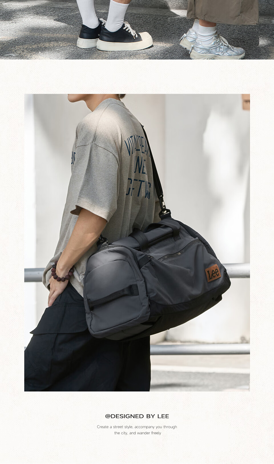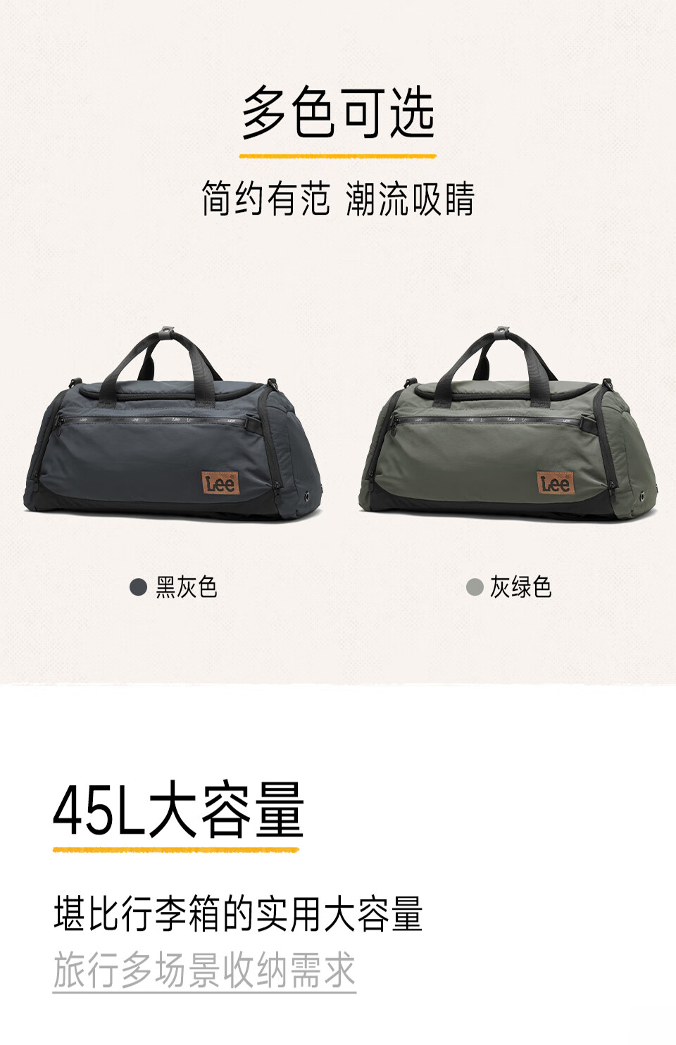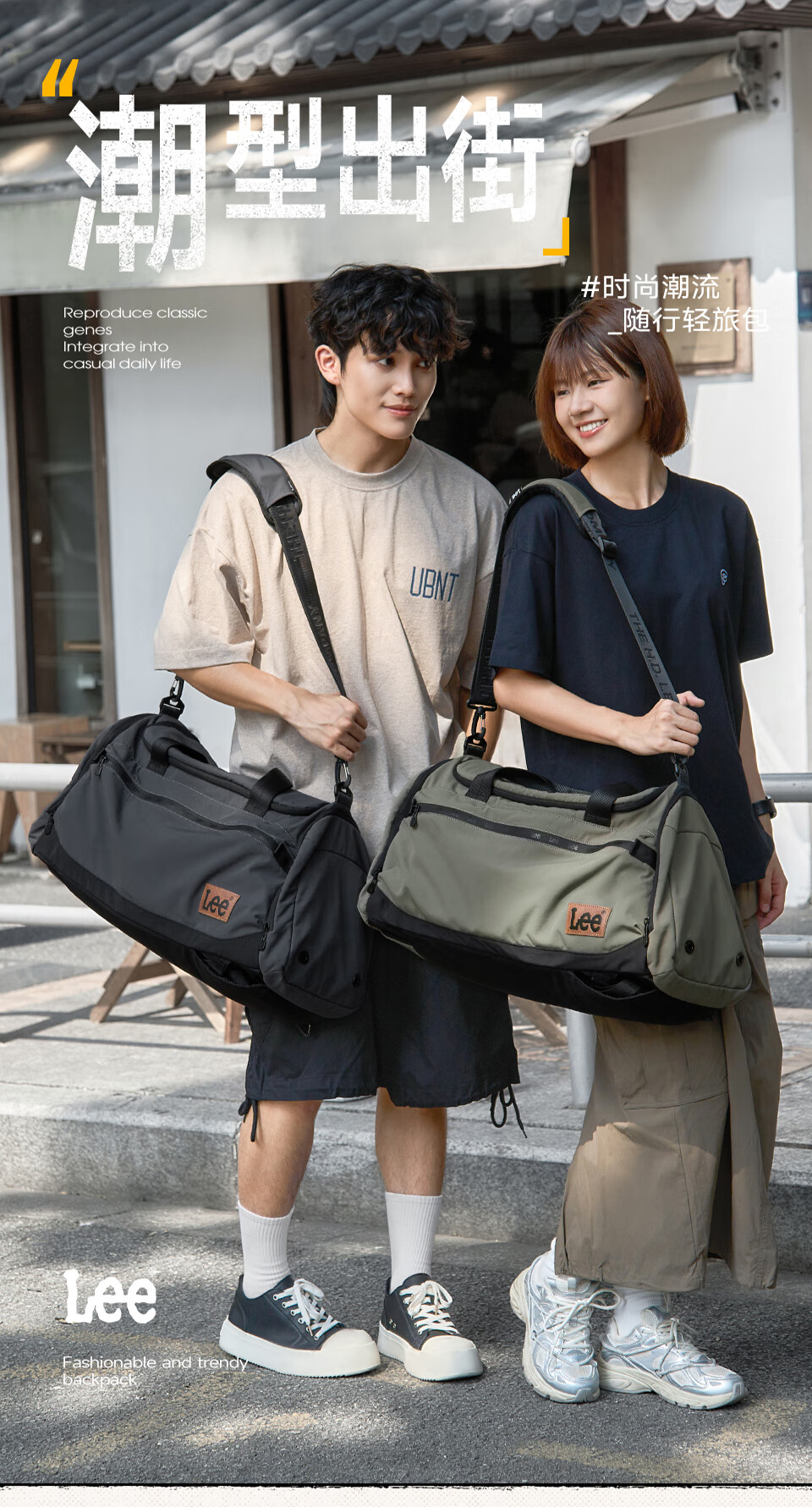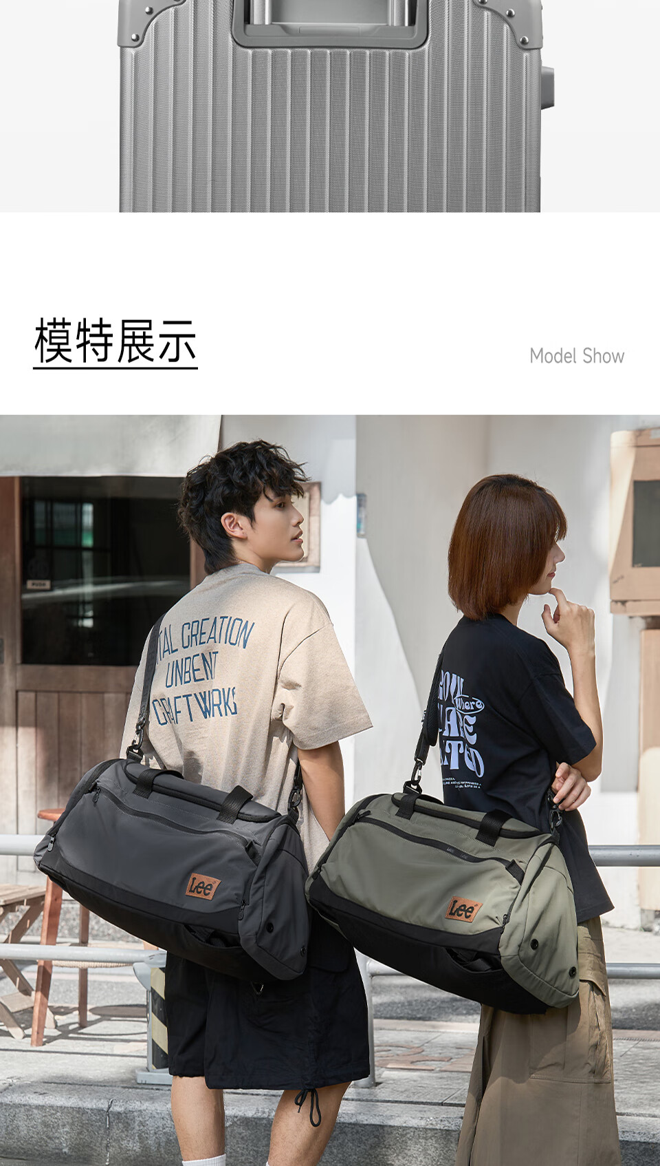 Lee large-capacity short-distance travel bag men's business trip portable luggage bag women's outdoor sports fitness bag gray green
