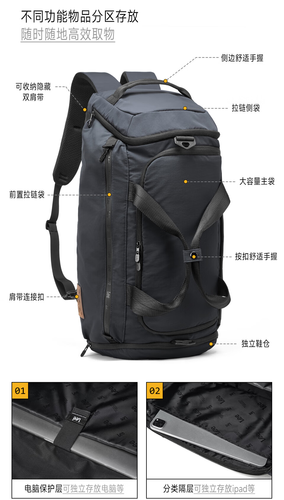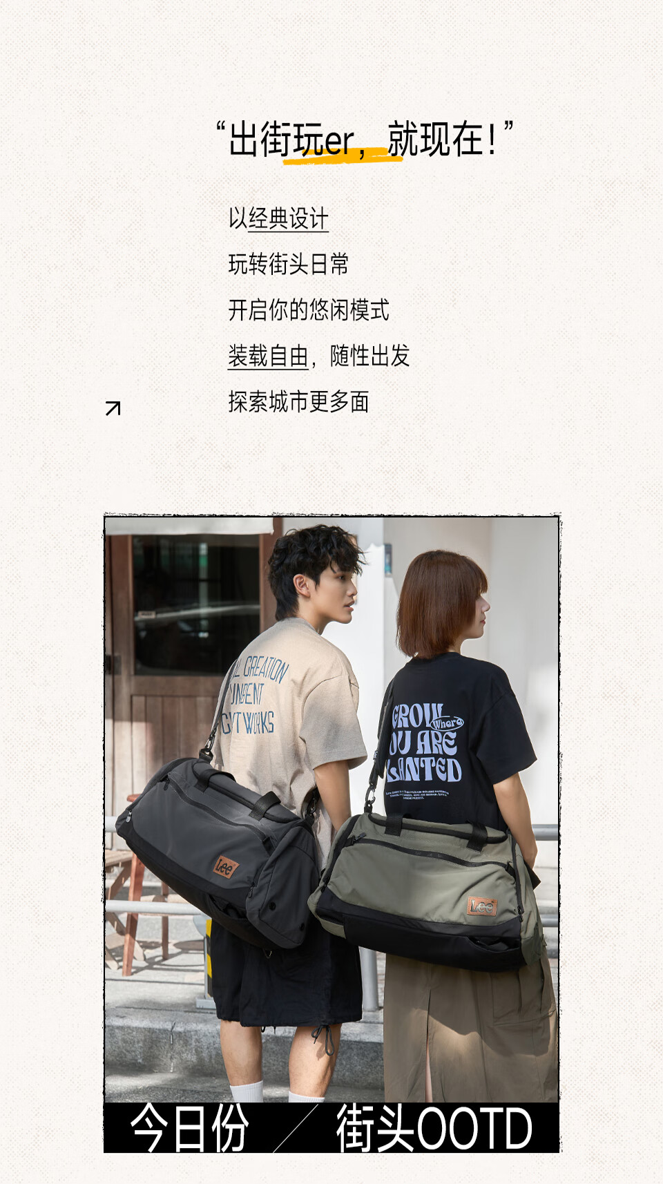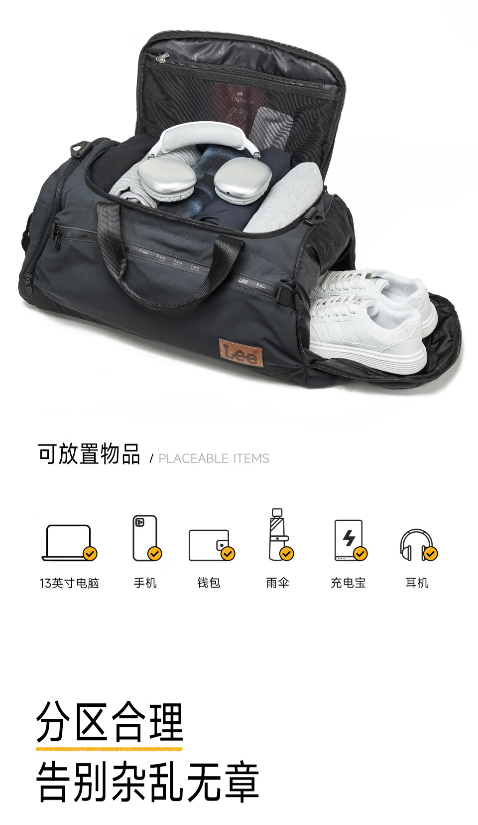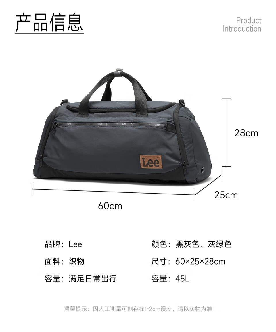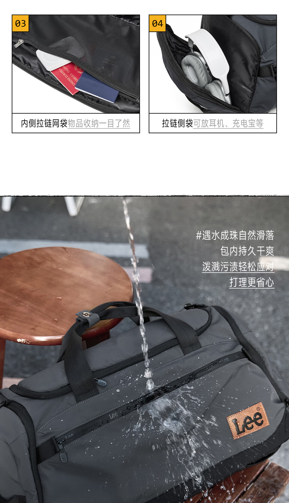 Lee large-capacity short-distance travel bag men's business trip portable luggage bag women's outdoor sports fitness bag gray green