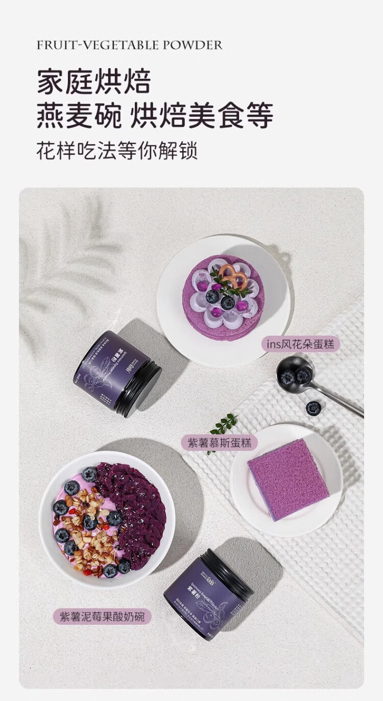 Youhuhu Purple Sweet Potato Powder 150g, special for baking steamed buns and dumplings with edible pigments, pure fruit and vegetable powder for drinking bread and cakes
