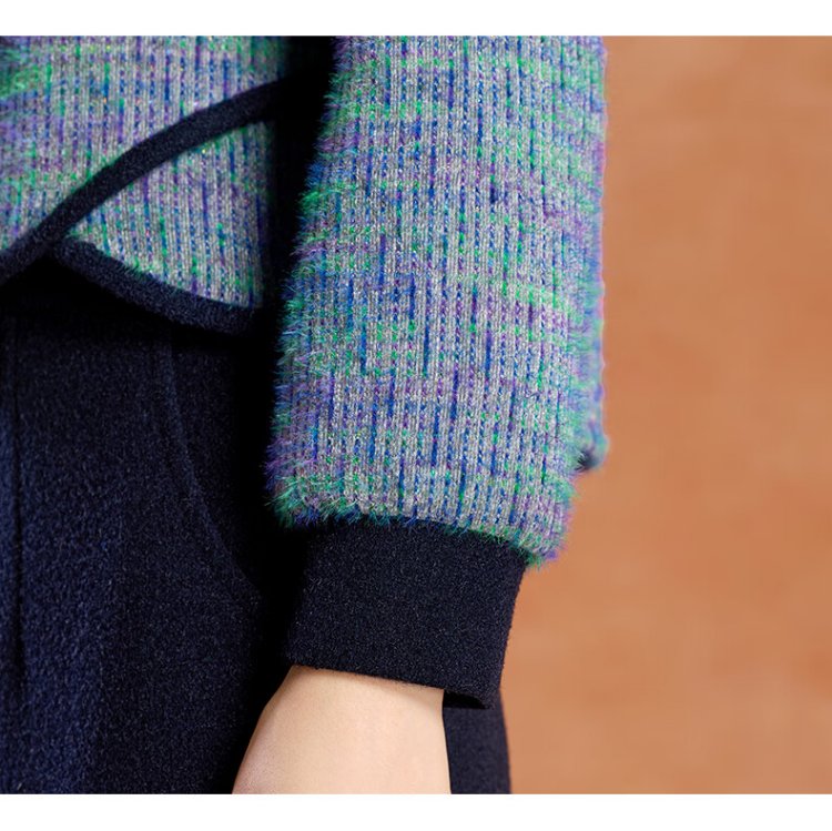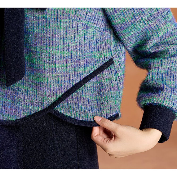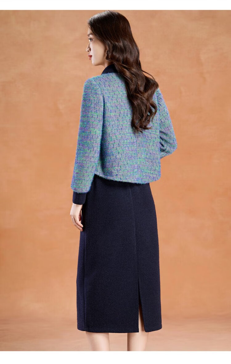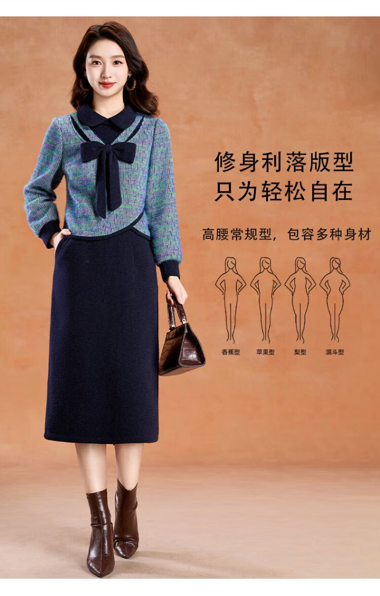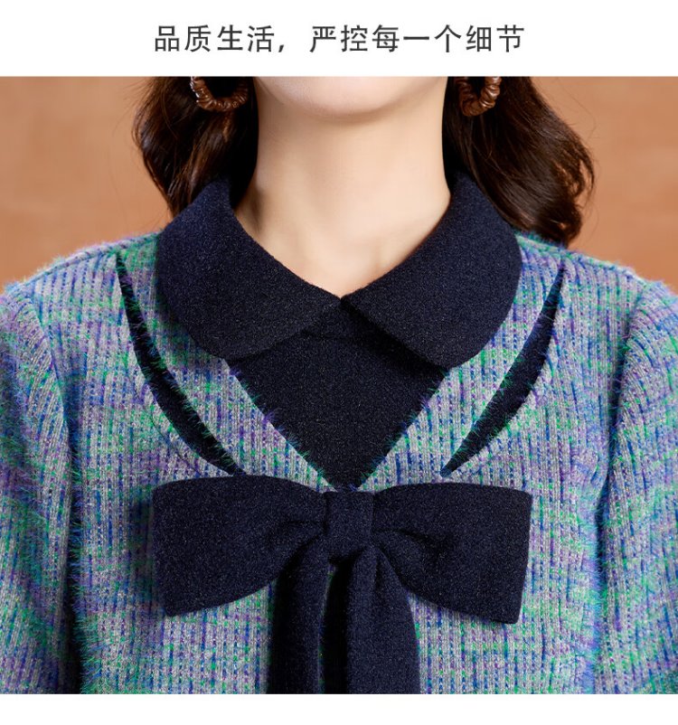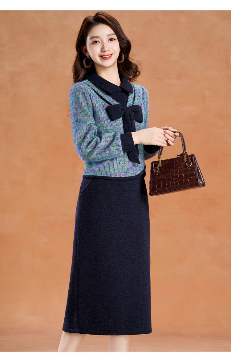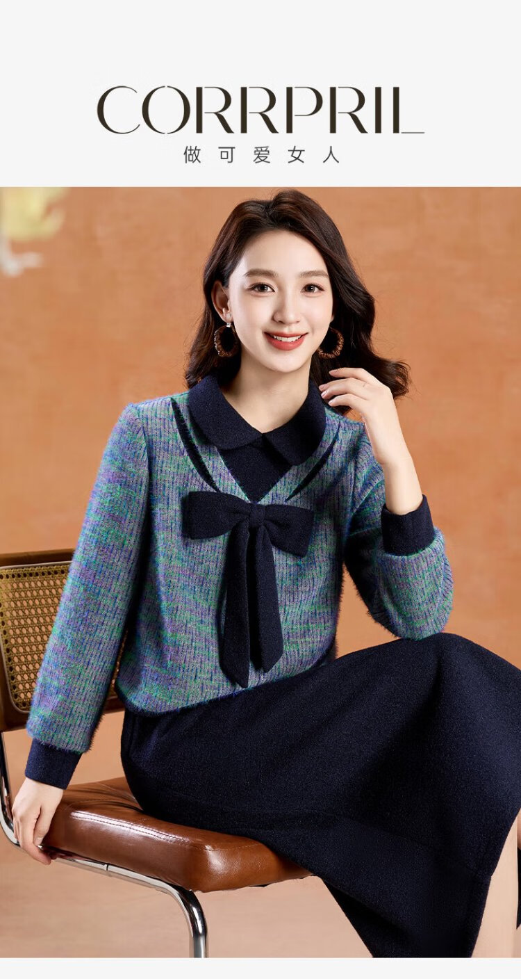 Kebel neckline bow design knitted skirt for women 2025 new winter imitation mink velvet contrasting color stitching two-piece set M