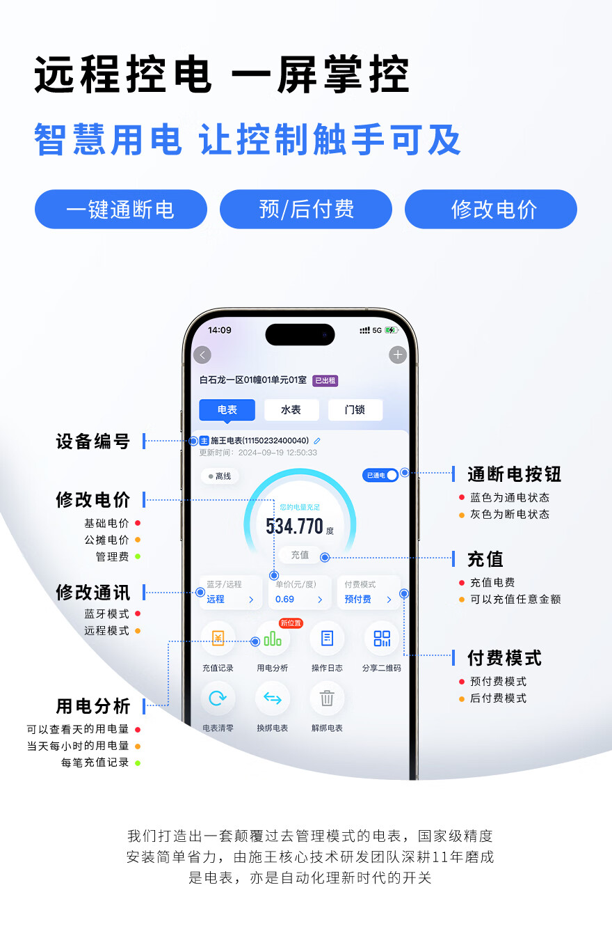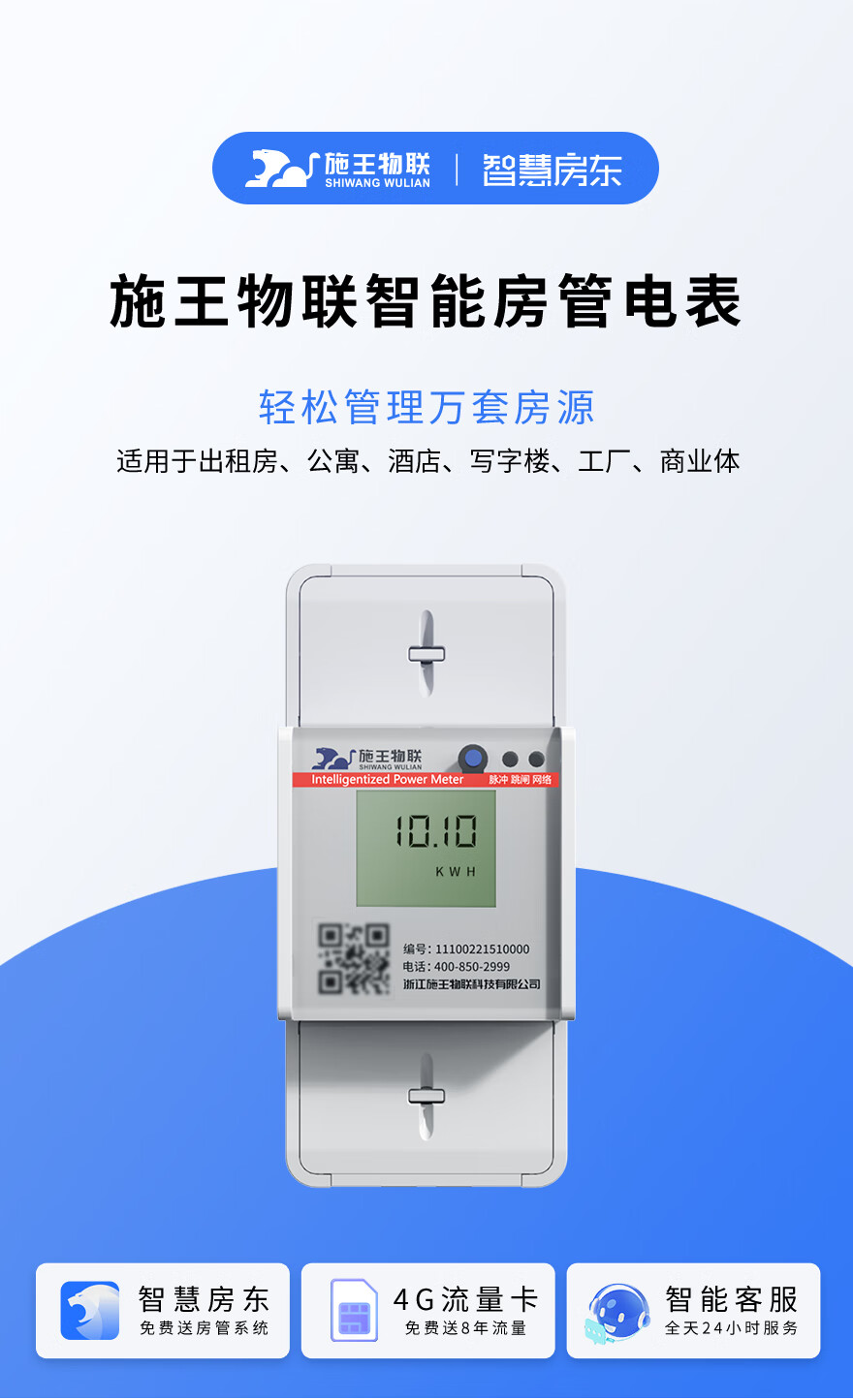 Shiwang IoT prepaid single-phase rental house dedicated remote control recharge meter reading three-phase four-wire smart meter 4G wall-mounted