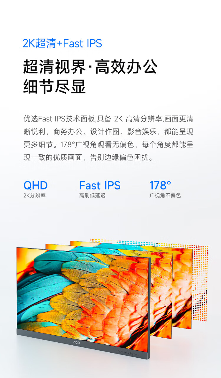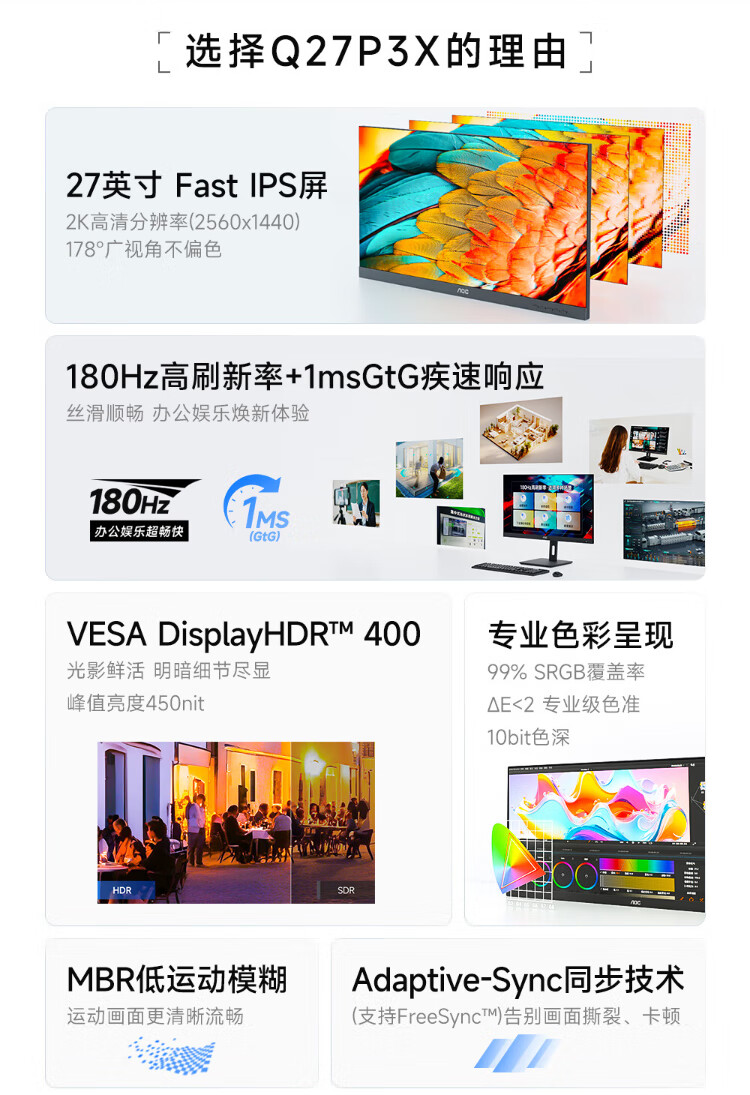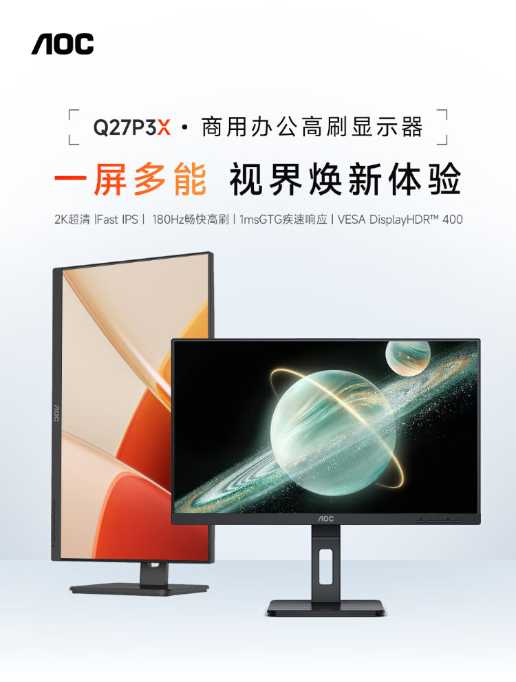99% new AOC monitor 2k high definition 27-inch FastIPS computer screen commercial office eye protection low blue light 180Hz high brush HDR400 notebook expansion screen Q27P3X