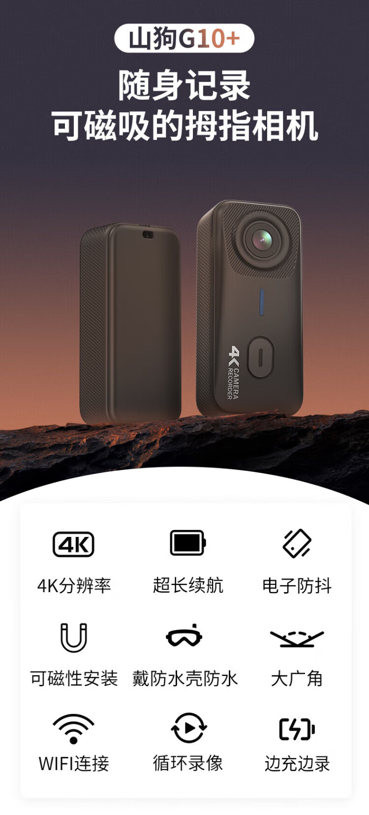 Mountain Dog G10+ thumb action camera 4K HD riding motorcycle driving recorder vlog fishing helmet chest small non-360 panoramic camera + 128G memory card