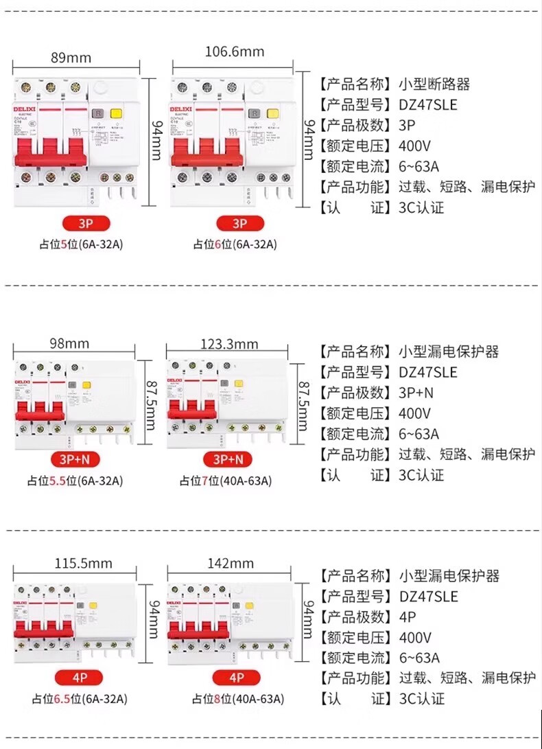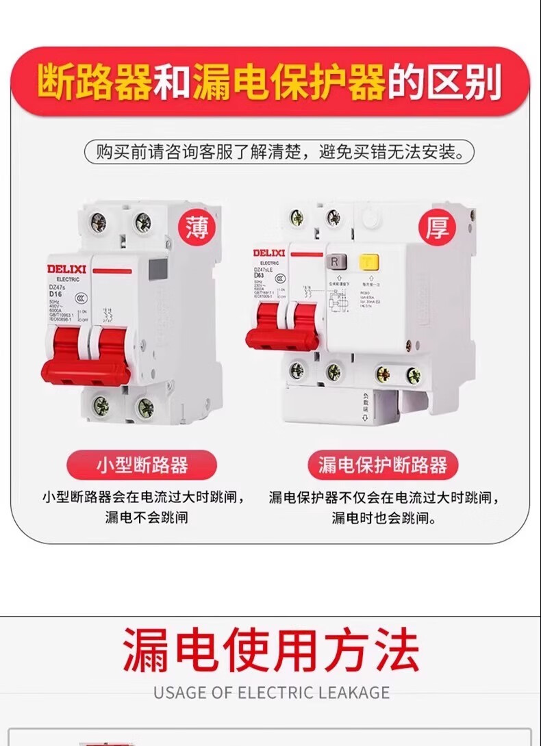 Delixi Electric air leakage protection circuit breaker protector DZ47sLE 2P D type 32A