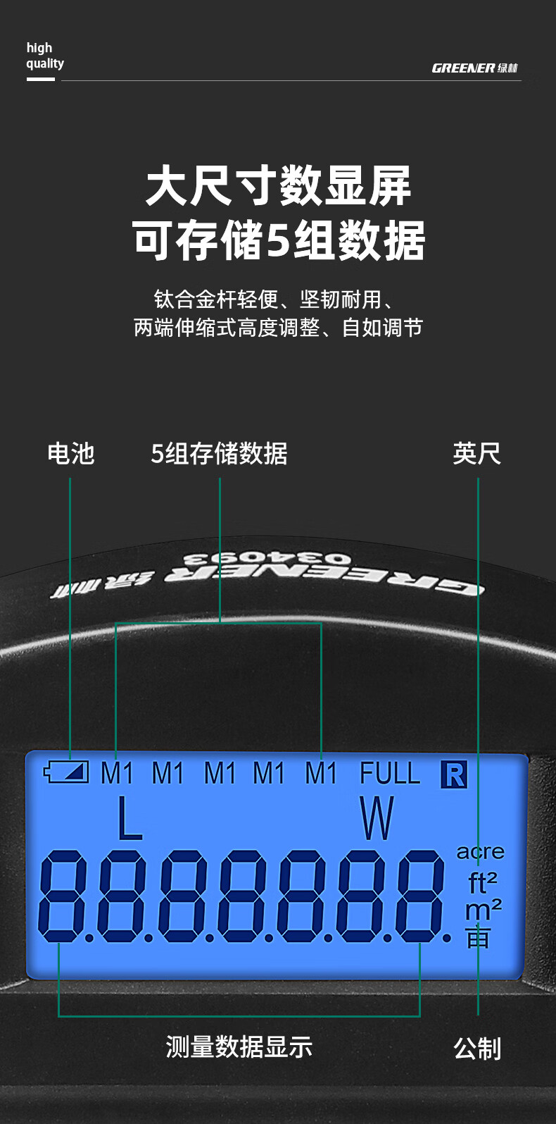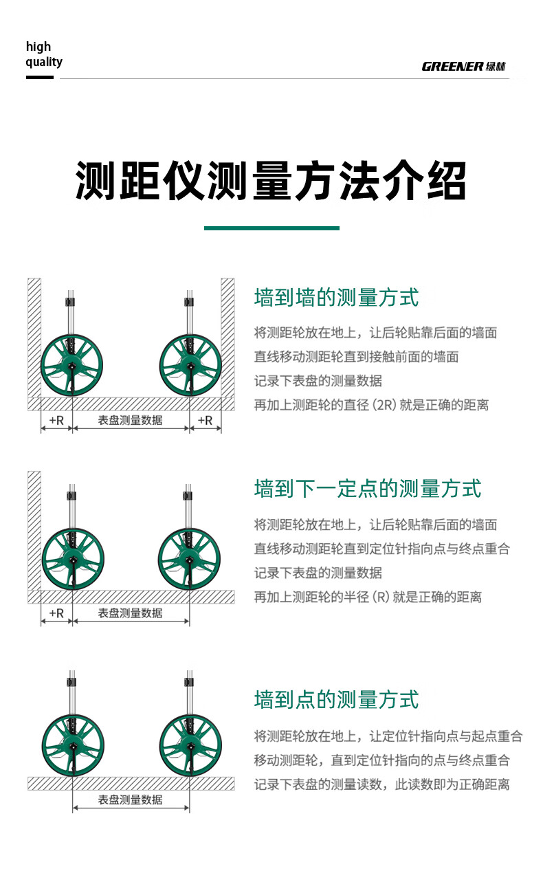 Green forest distance measuring wheel roller distance meter measuring wheel ruler roller push ruler electronic digital display large wheel 100cm
