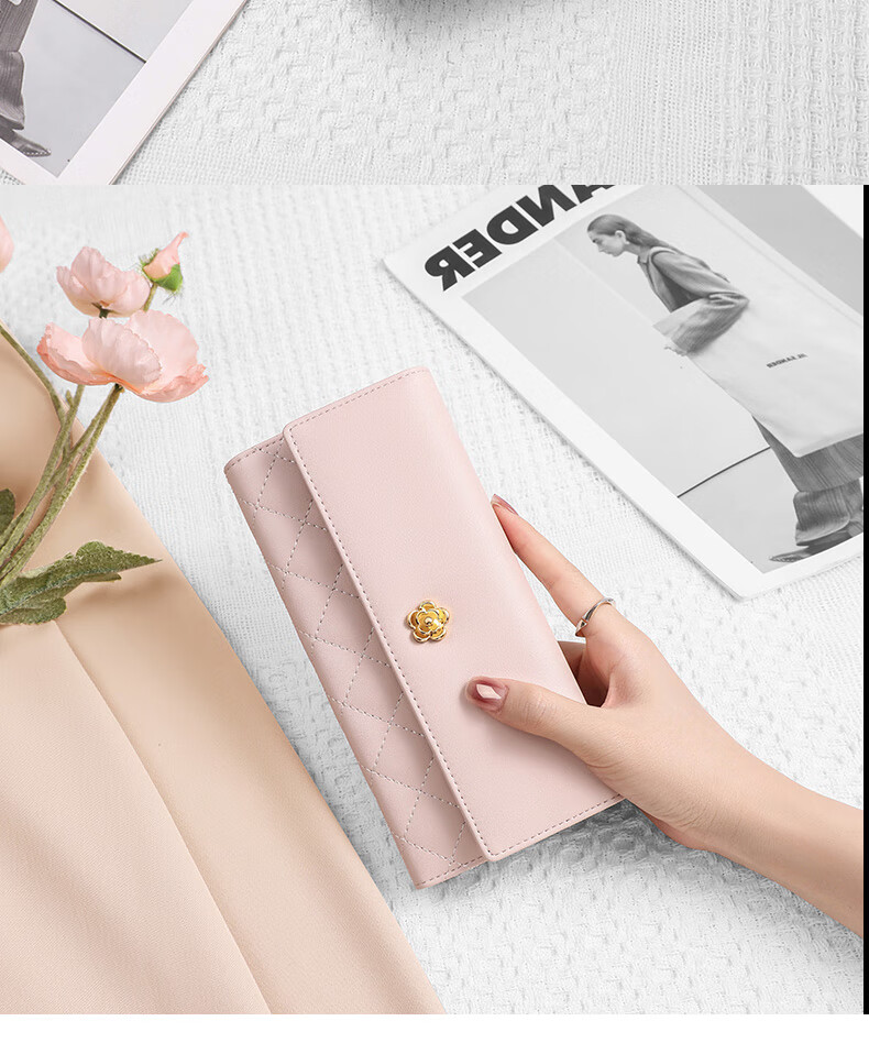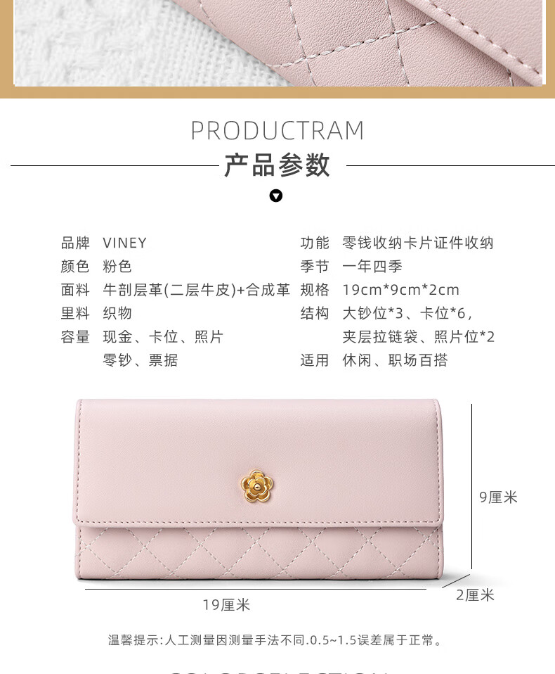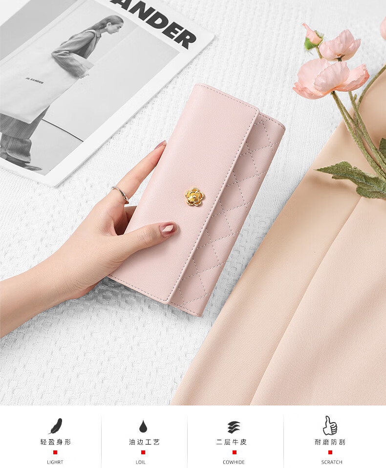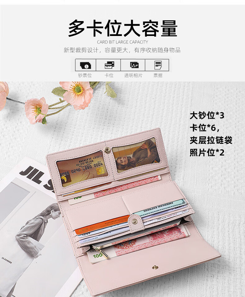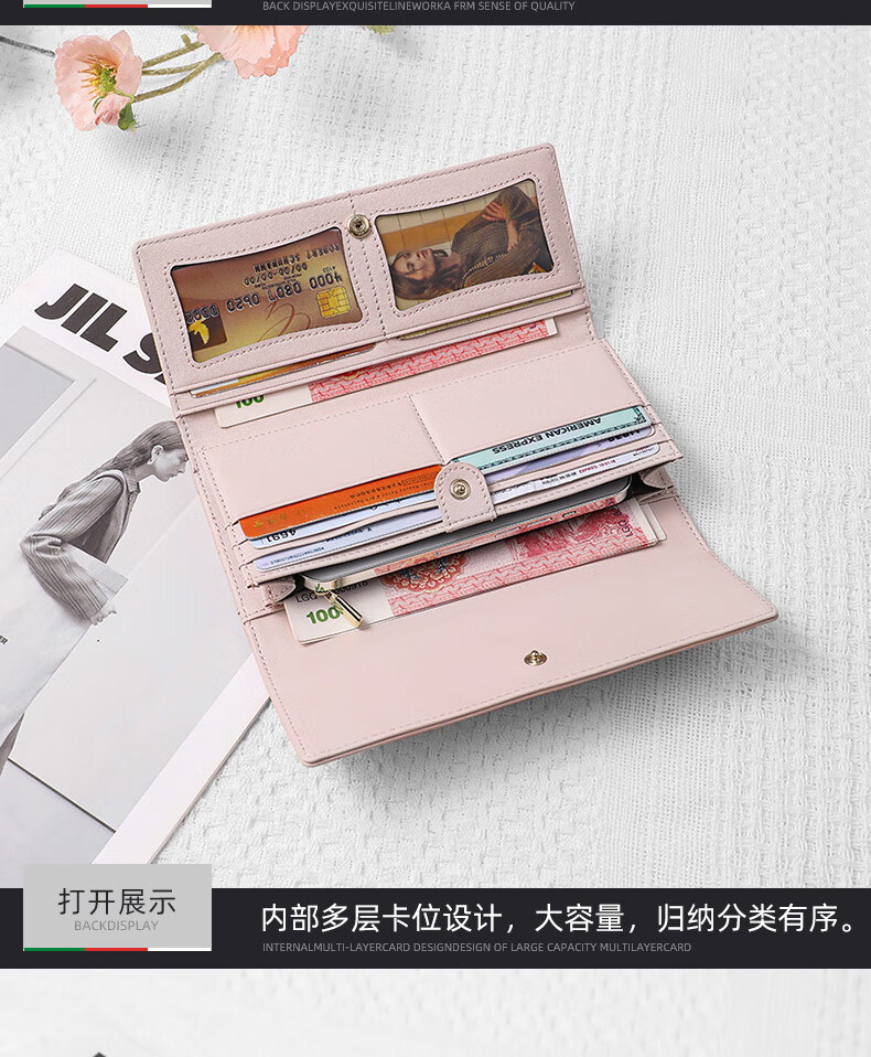 Viney cowhide women's wallet large capacity clutch bag student high-end light luxury wallet wallet long multi-card slot coin purse
