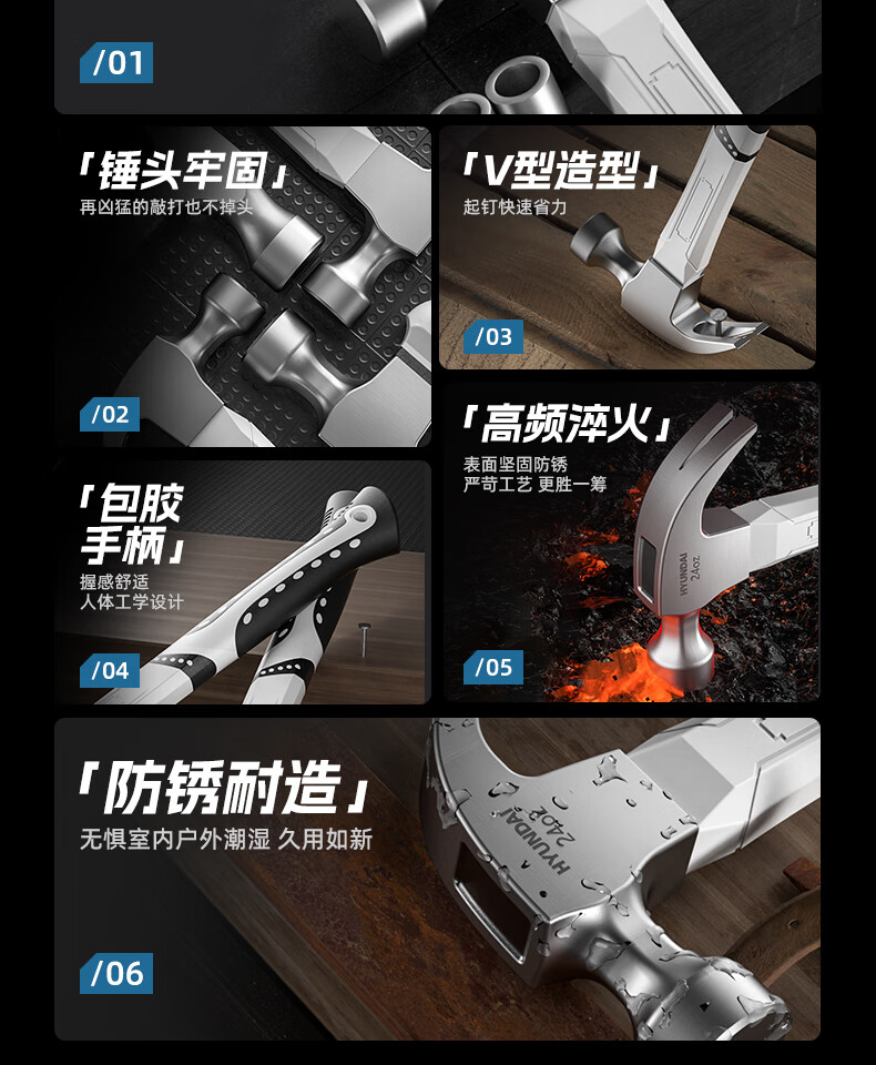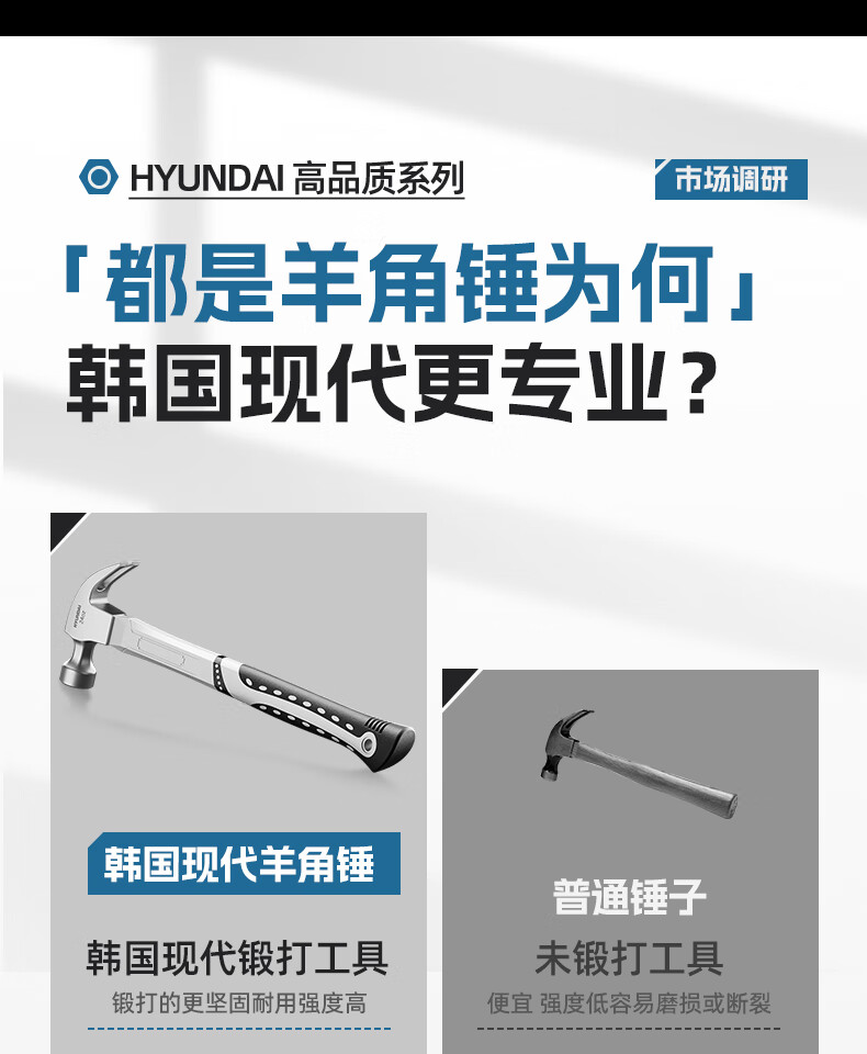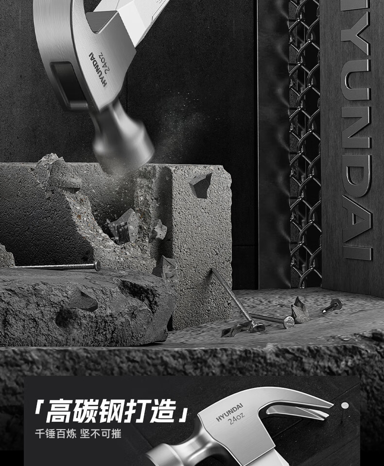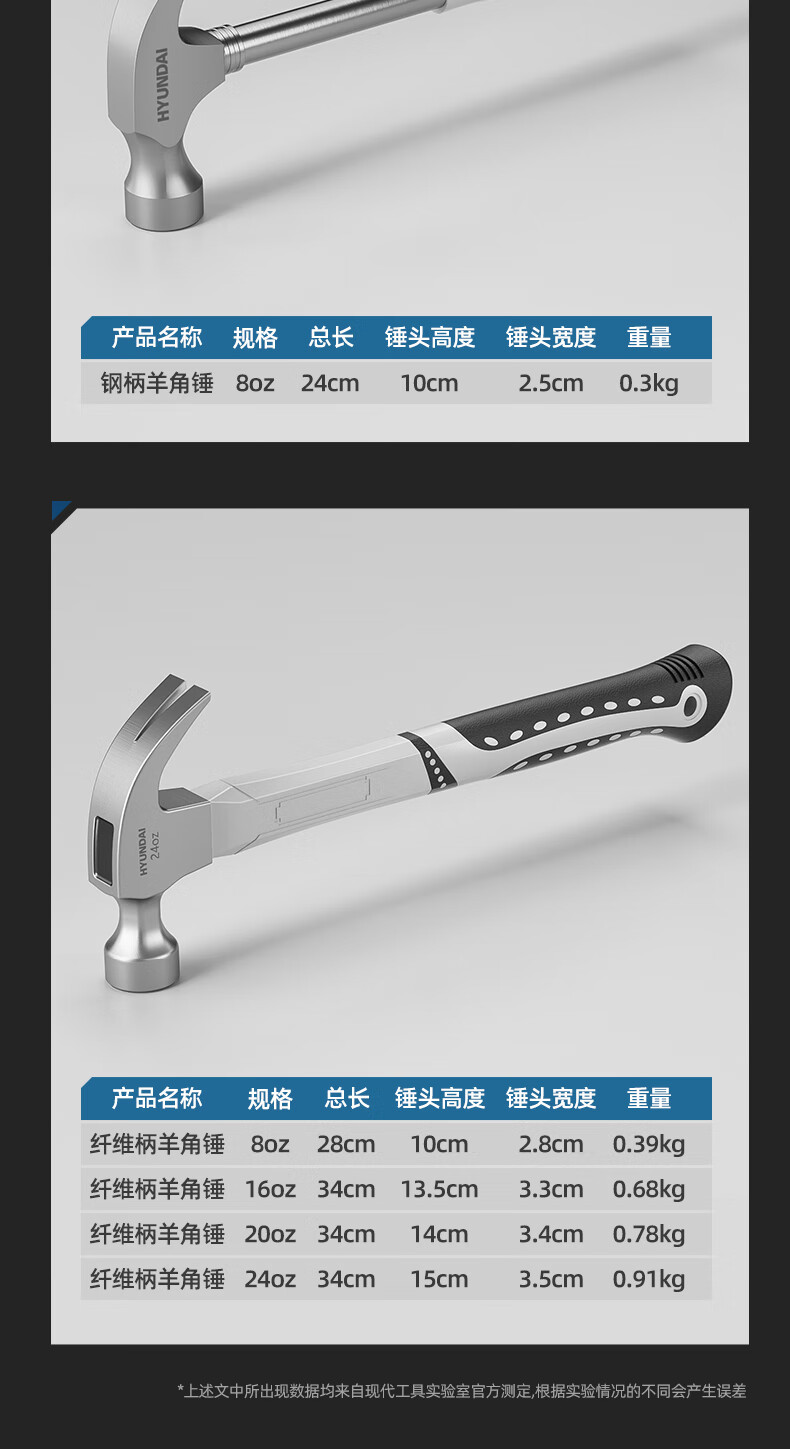 HYUNDAI Korean modern hammer hammer claw hammer household nail hammer woodworking hammer fiber handle small hammer 16oz