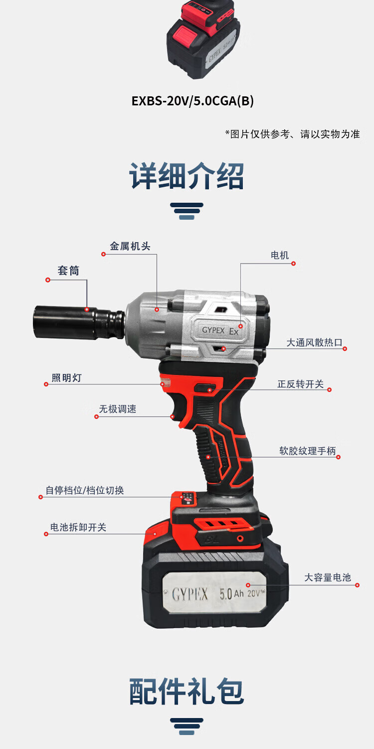 Baidun explosion-proof electric wrench manufacturer direct sales safety guarantee industrial site strong torque stainless steel chuck wrench two batteries and one charge 20V YPEX-DBS/4.0CGB (free upgrade)