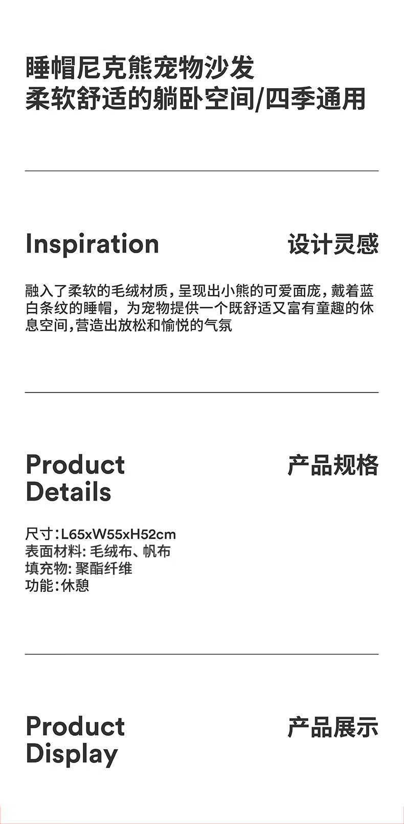 ZEZE Nick Bear Dog House Cat House All Seasons Open Pet Bed Small Dog Cat Dog Bed Sofa