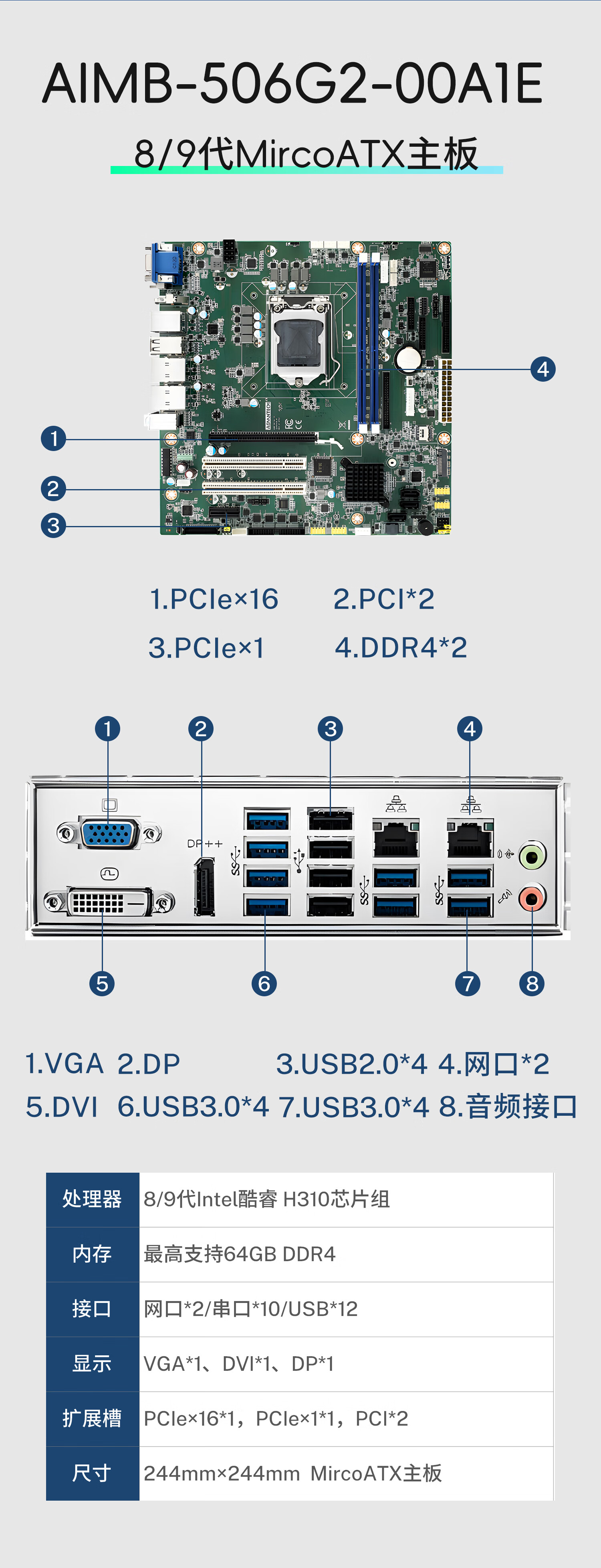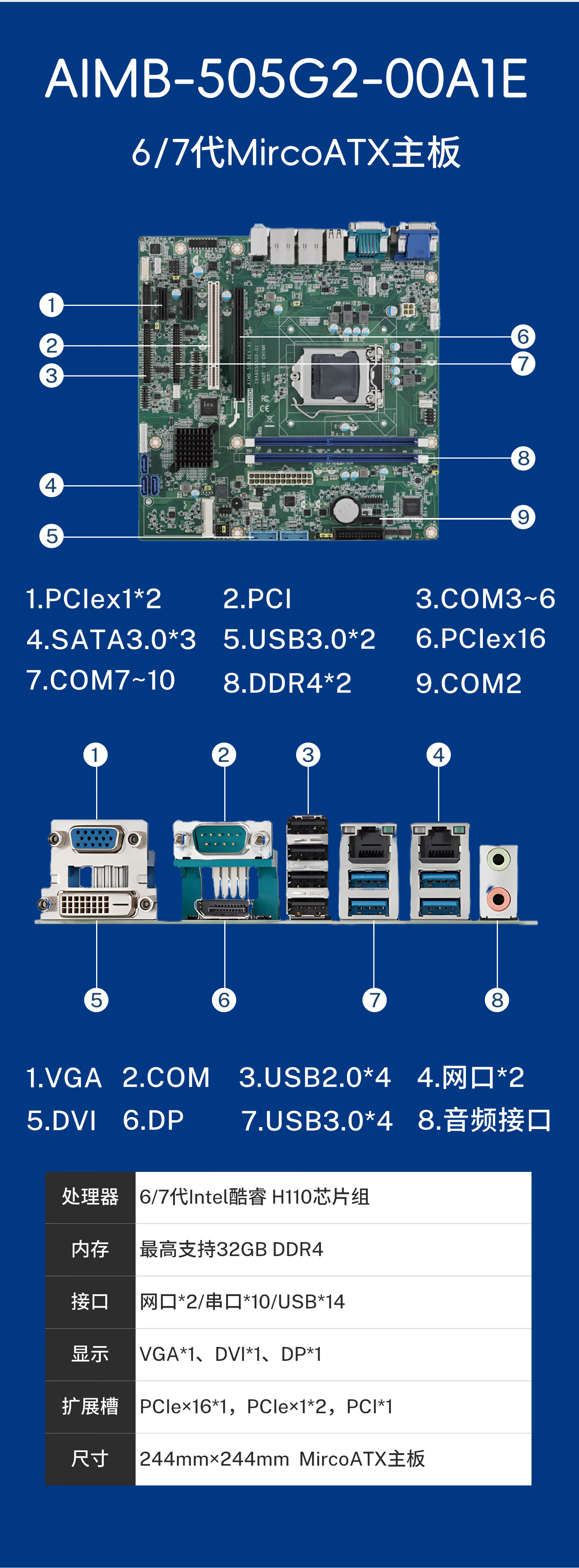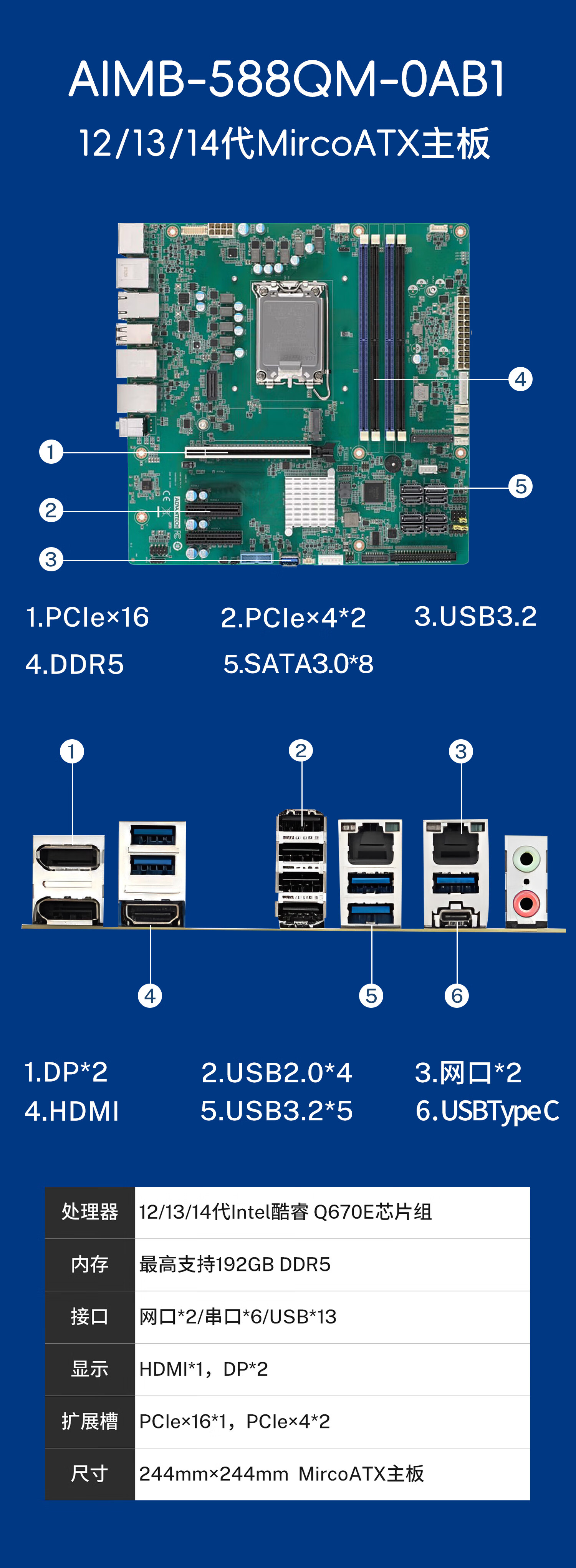 ADVANTECH MircoATX industrial motherboard supports 12/13/14 generation PCIe*2+PCI*2 high-performance industrial computer motherboard AIMB-508HF-EAA1