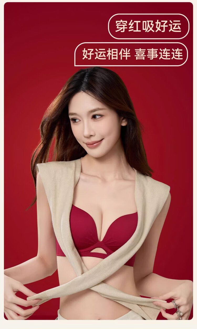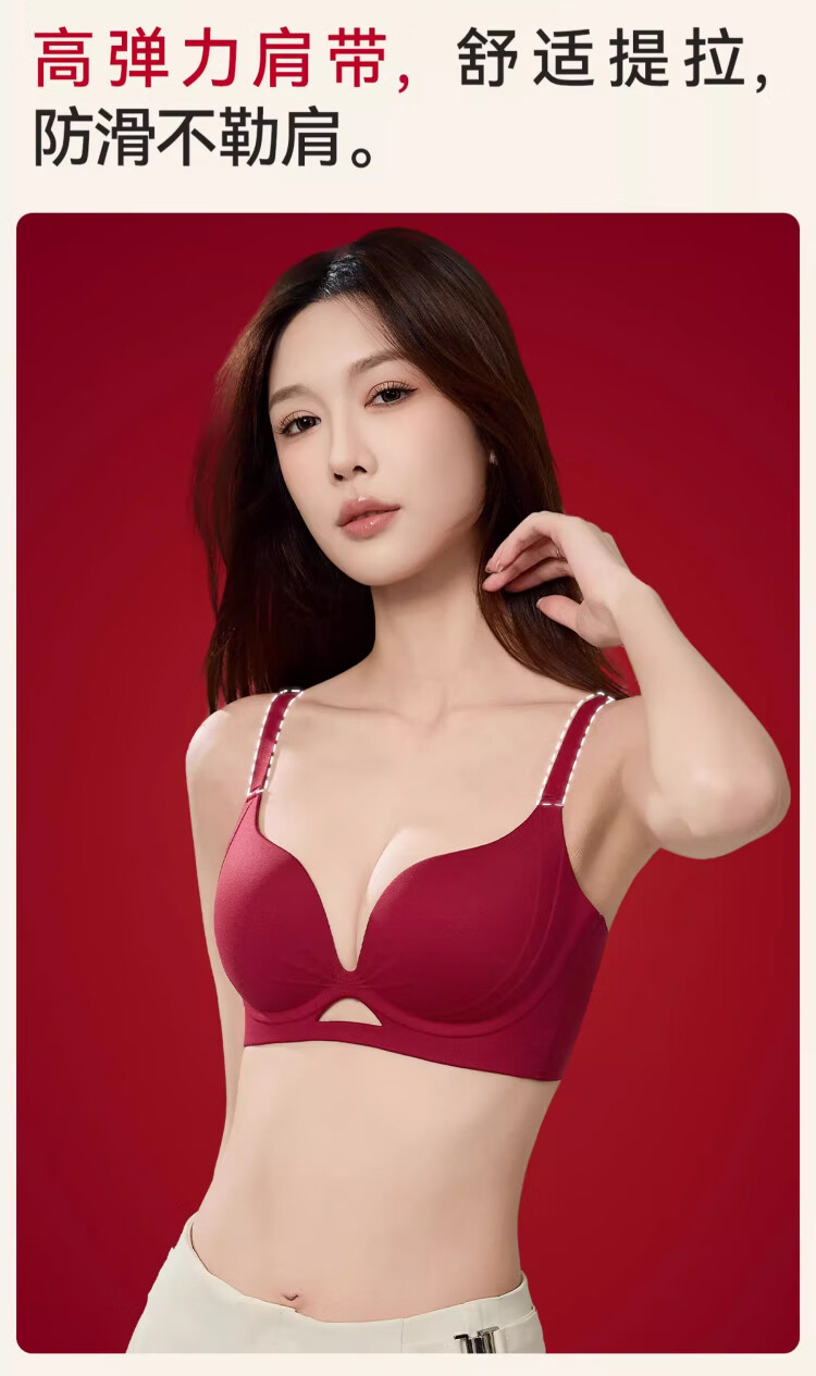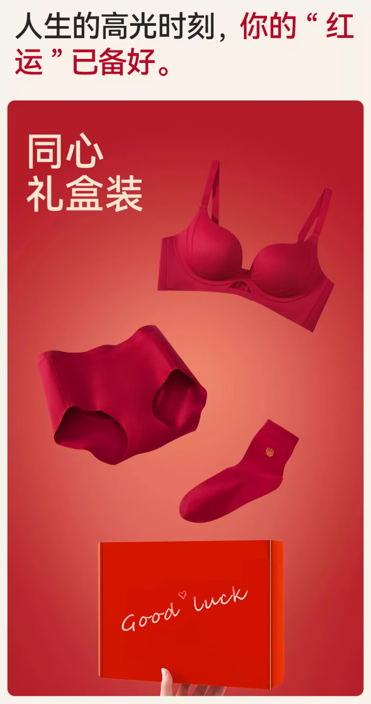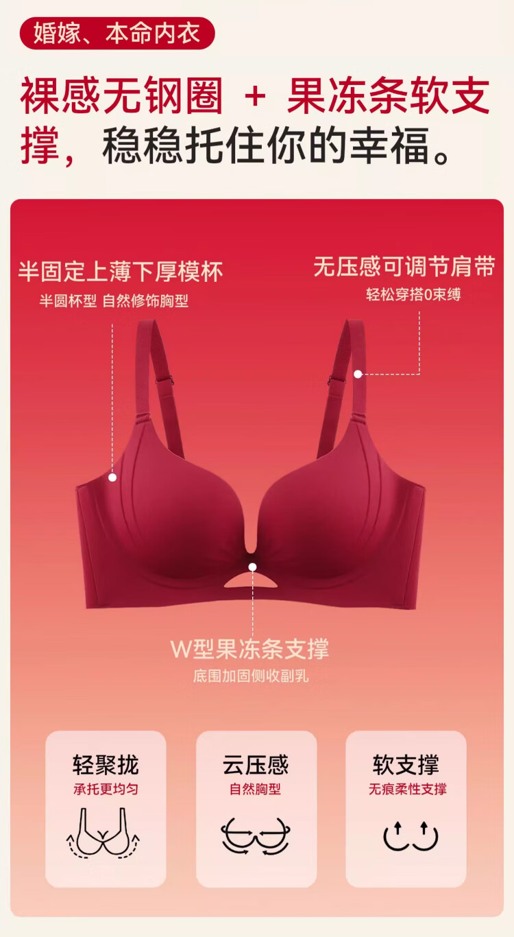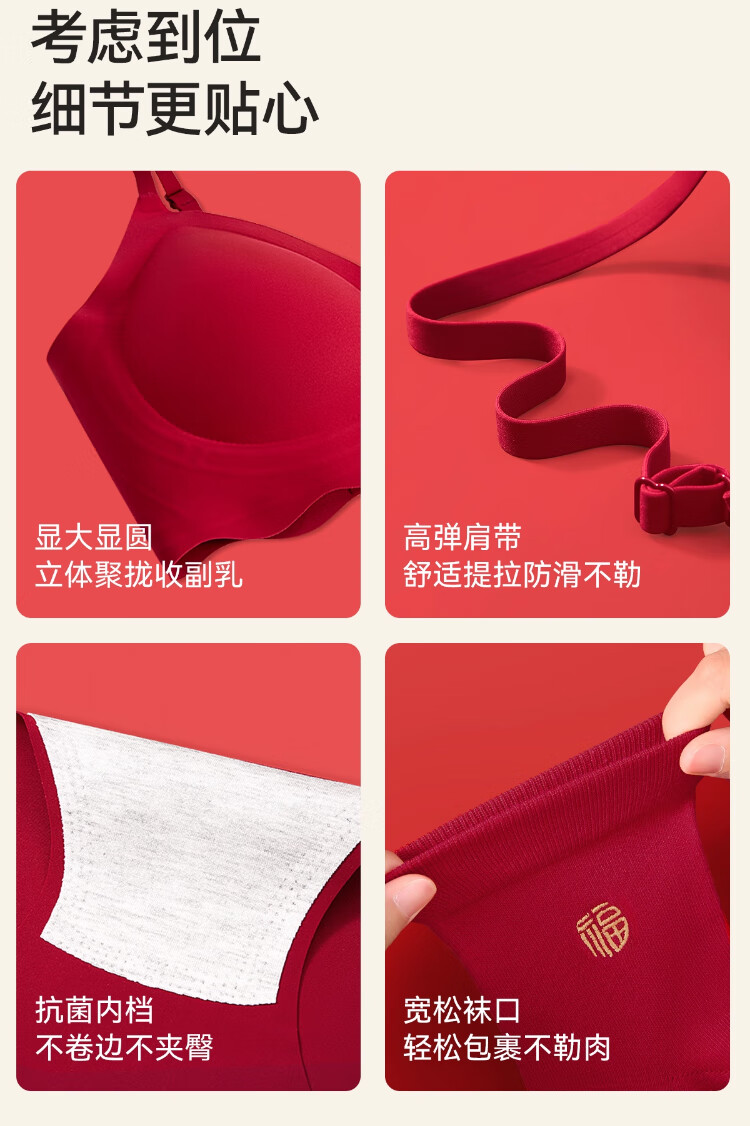 Xue Qianman's zodiac year red underwear set for women with small breasts gathered to look bigger for brides to get married sexy seamless bra autumn and winter gift box