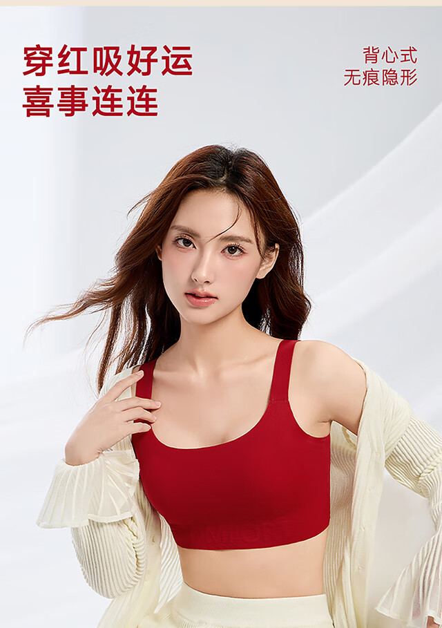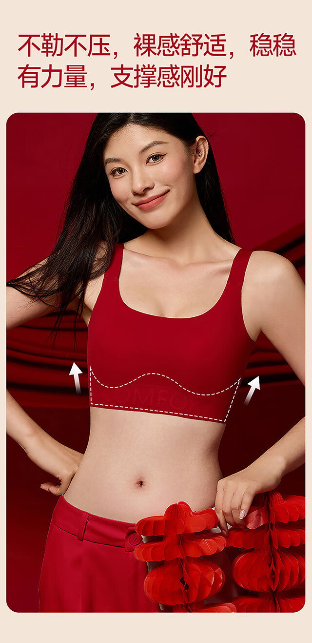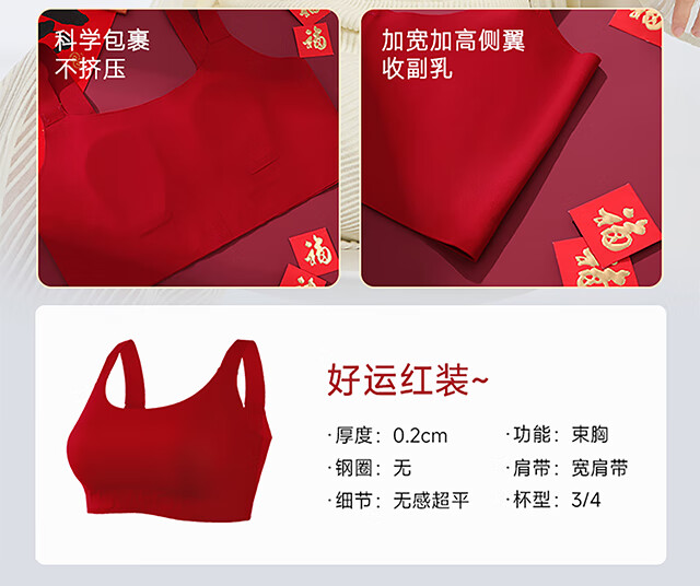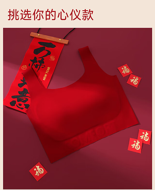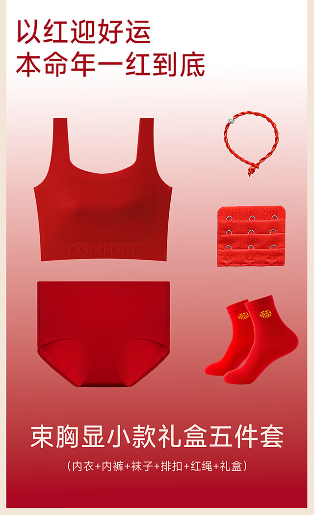 Xue Qianman's red paper underwear women's bra gift box in the year of birth, seamless festive vest-style push-up bra set