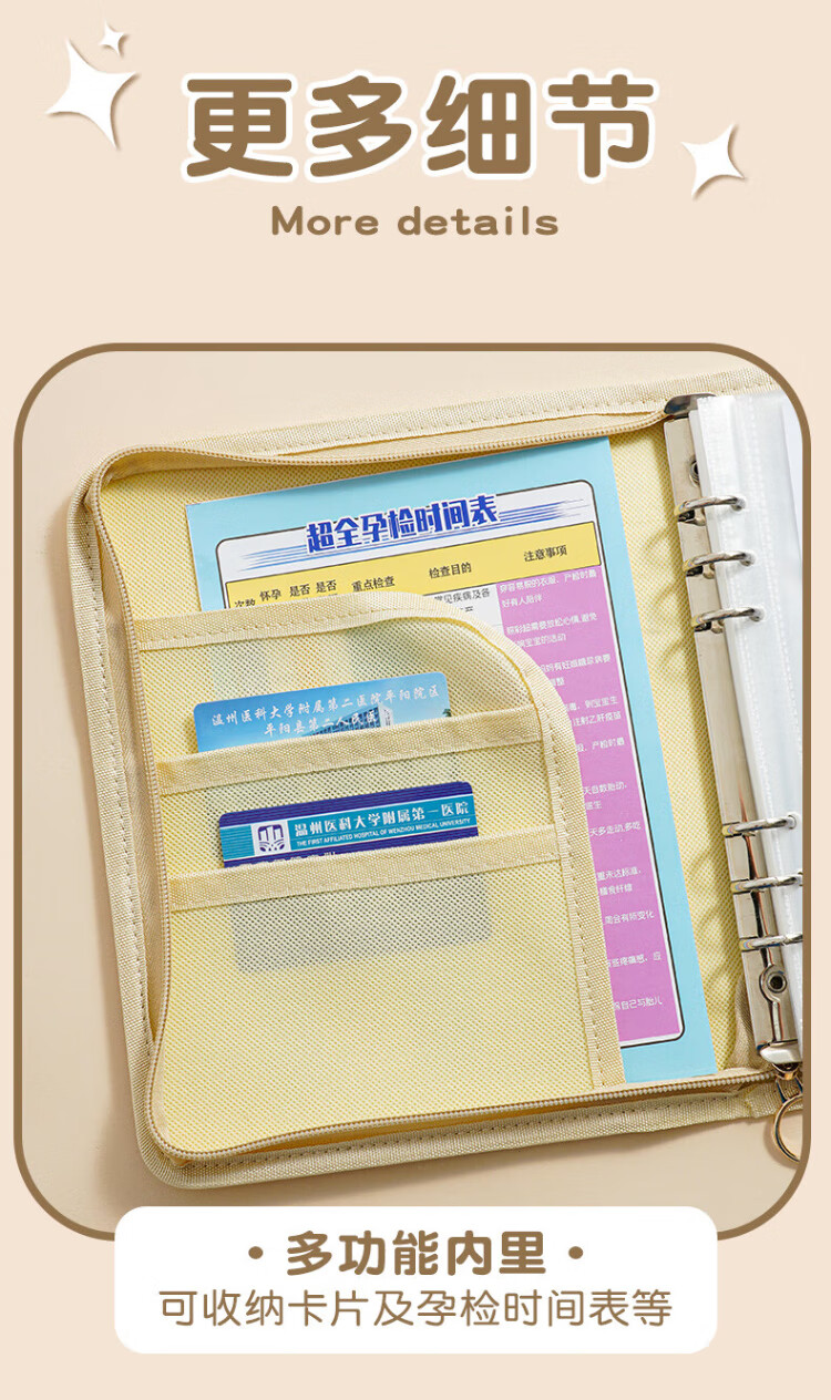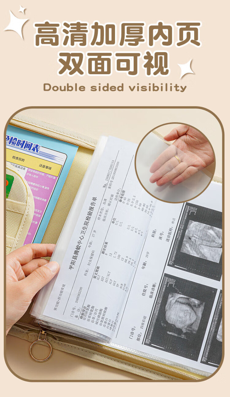 Fan Yejia Pregnancy Test Storage Book with Zipper Prenatal Test Report Information Bag Foldable Portable Large Capacity File Storage Bag