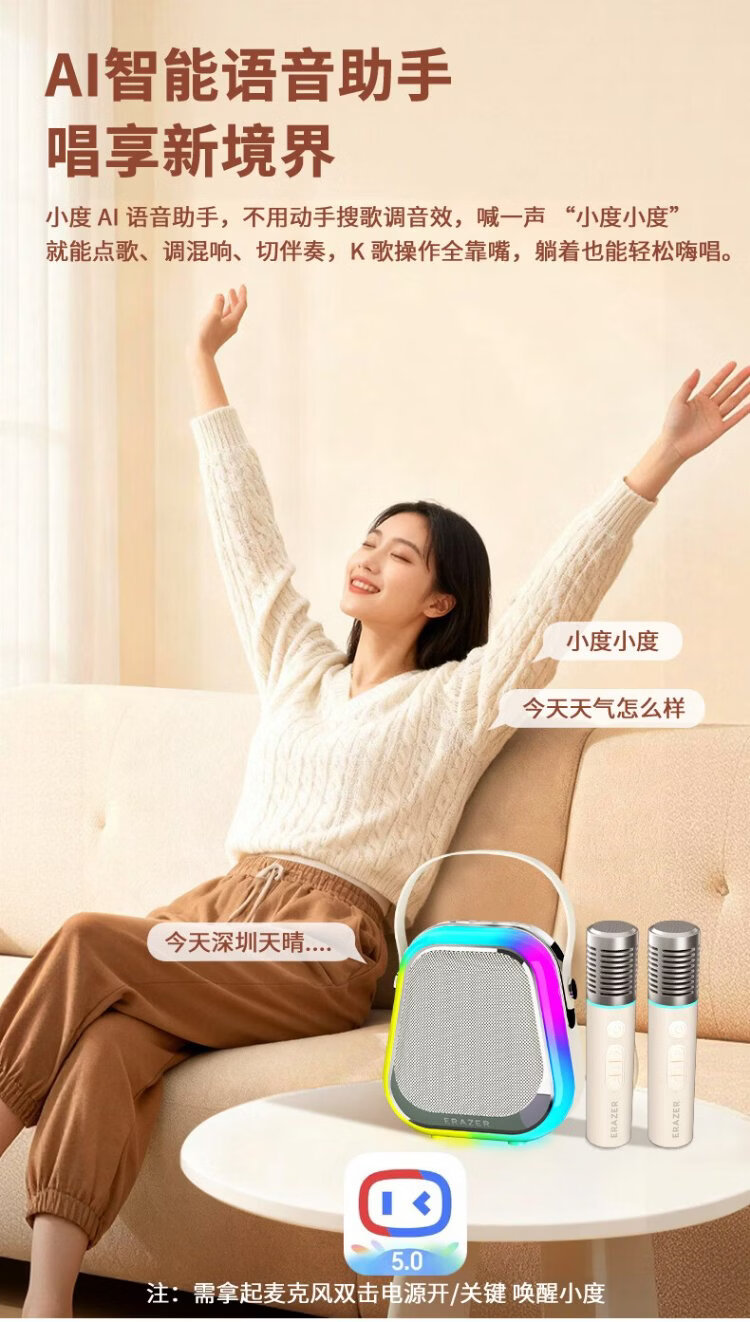 Lenovo ecological brand special ability karaoke microphone audio Xiaodu voice intelligent interactive all-in-one wireless microphone singing artifact Valentine's Day gift home karaoke with microphone