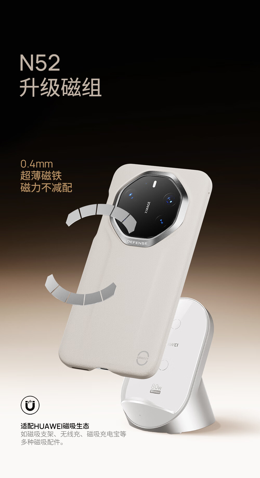 Determined color, magnetic fast charging, suitable for Huawei Mate80RS mobile phone case, magnetic suction, leather all-inclusive, 0 gravity, light leather 80RS, extraordinary master, light and comfortable, cedar white