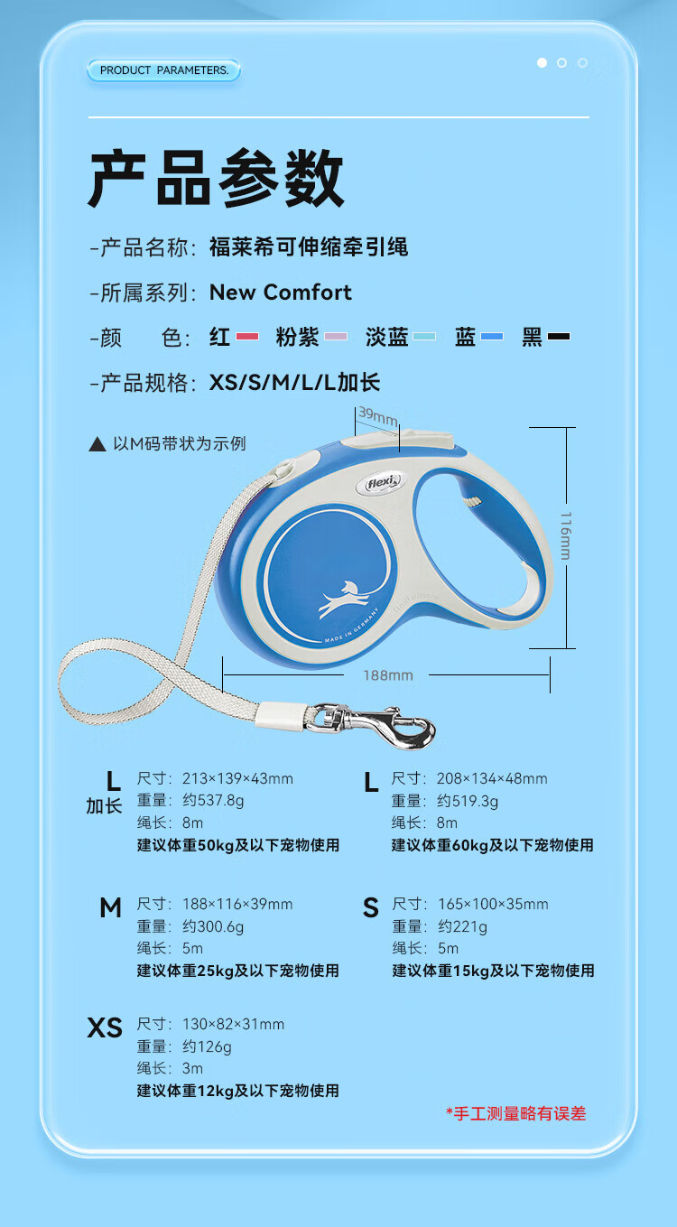 Flexi Alien Fashion Series (New Comfort) Ribbon XS 3m 12kg Sky Blue