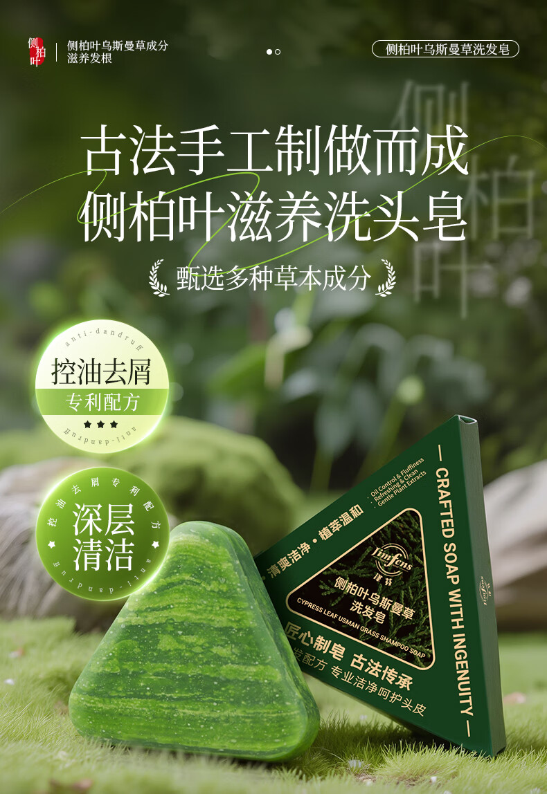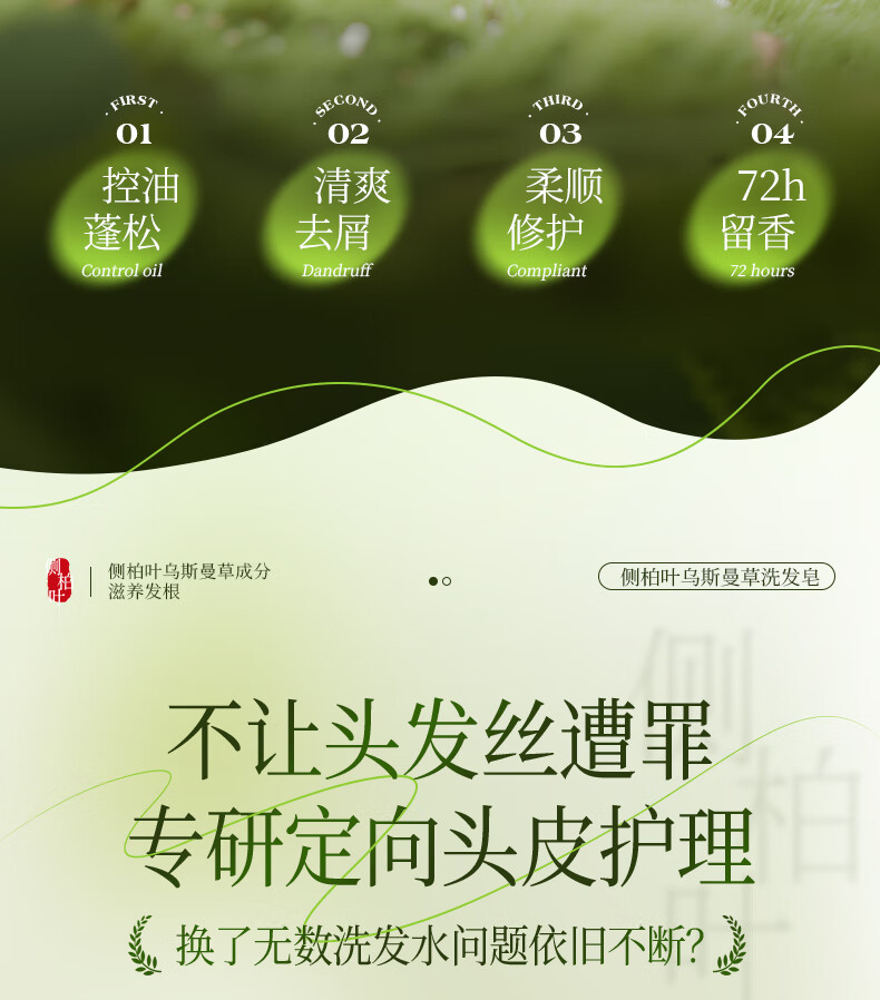 Zefen Platycladus orientalis leaf Usman grass shampoo soap plant extract herbal essence hair nourishing silicone-free oil refreshing plus 30%