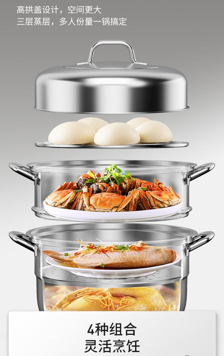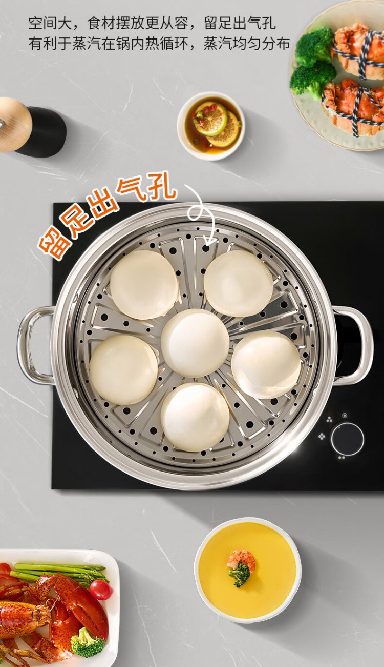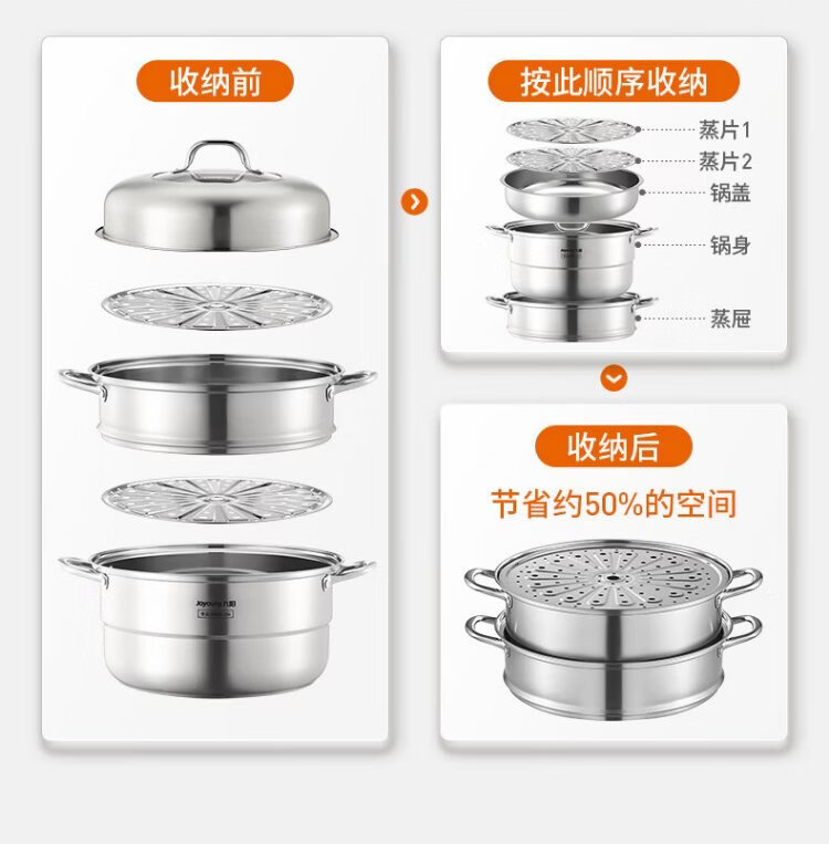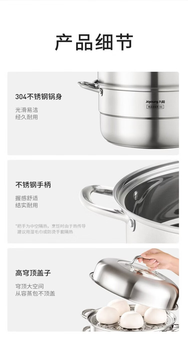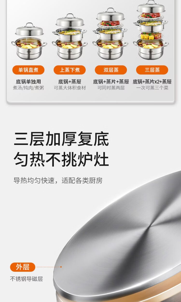 Joyoung steamer 304 stainless steel household thickened large-capacity steel handle stew soup pot gas induction cooker universal three-layer 32cm