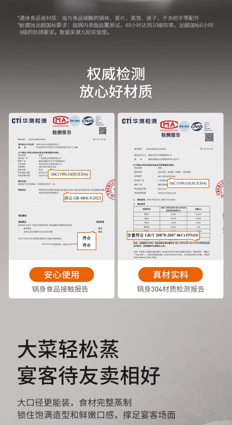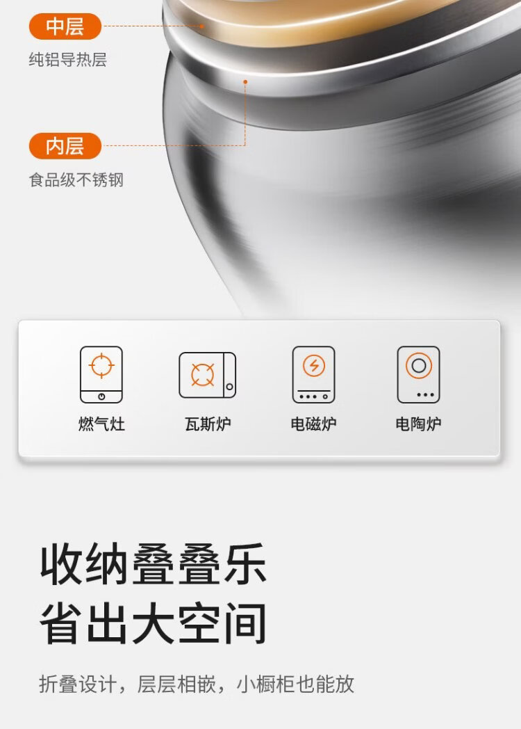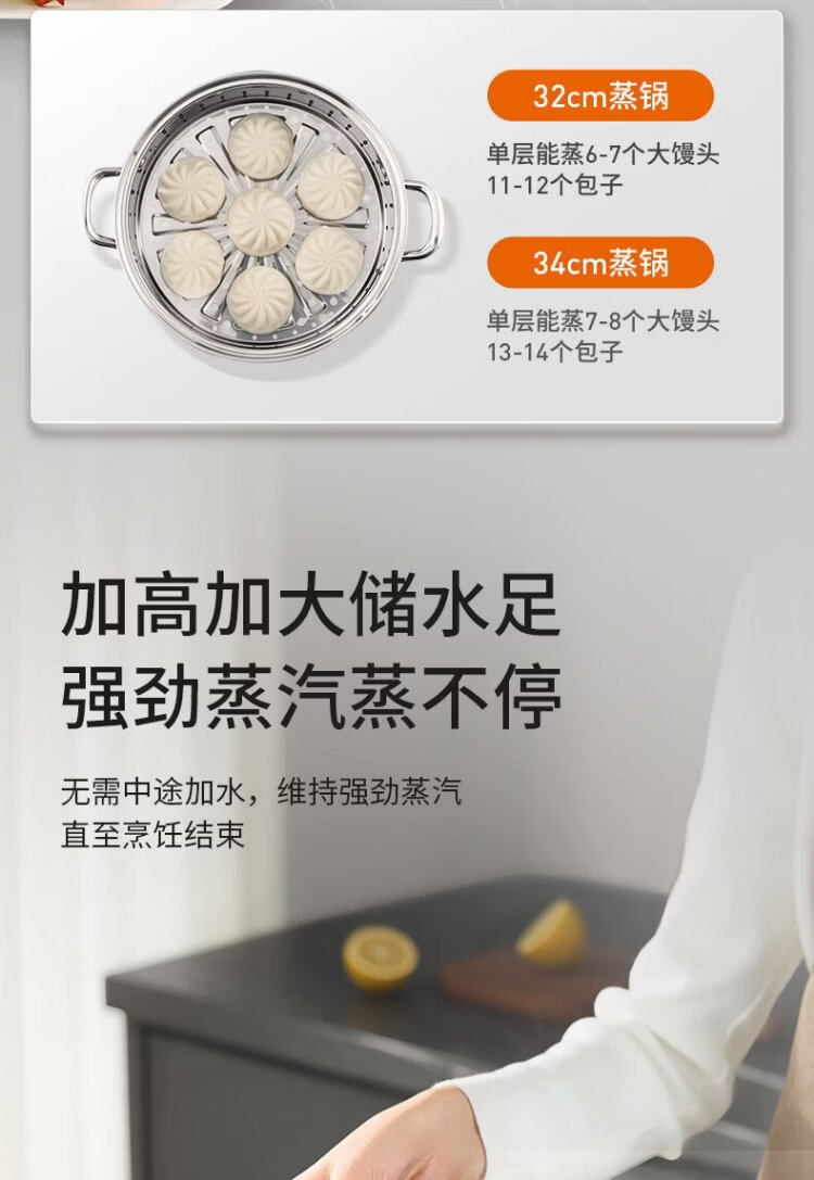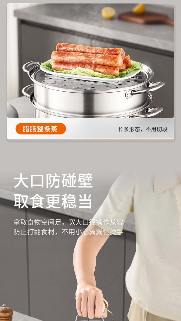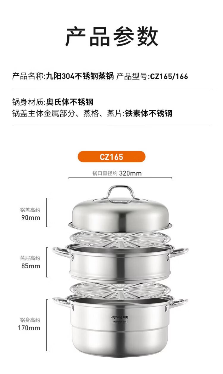 Joyoung steamer 304 stainless steel household thickened large-capacity steel handle stew soup pot gas induction cooker universal three-layer 32cm