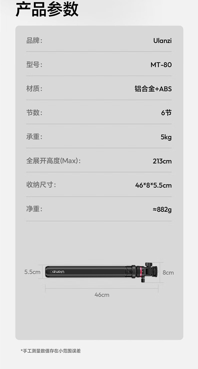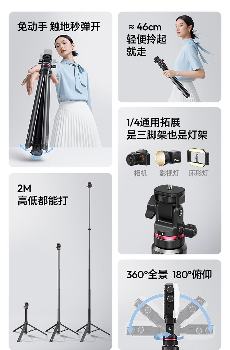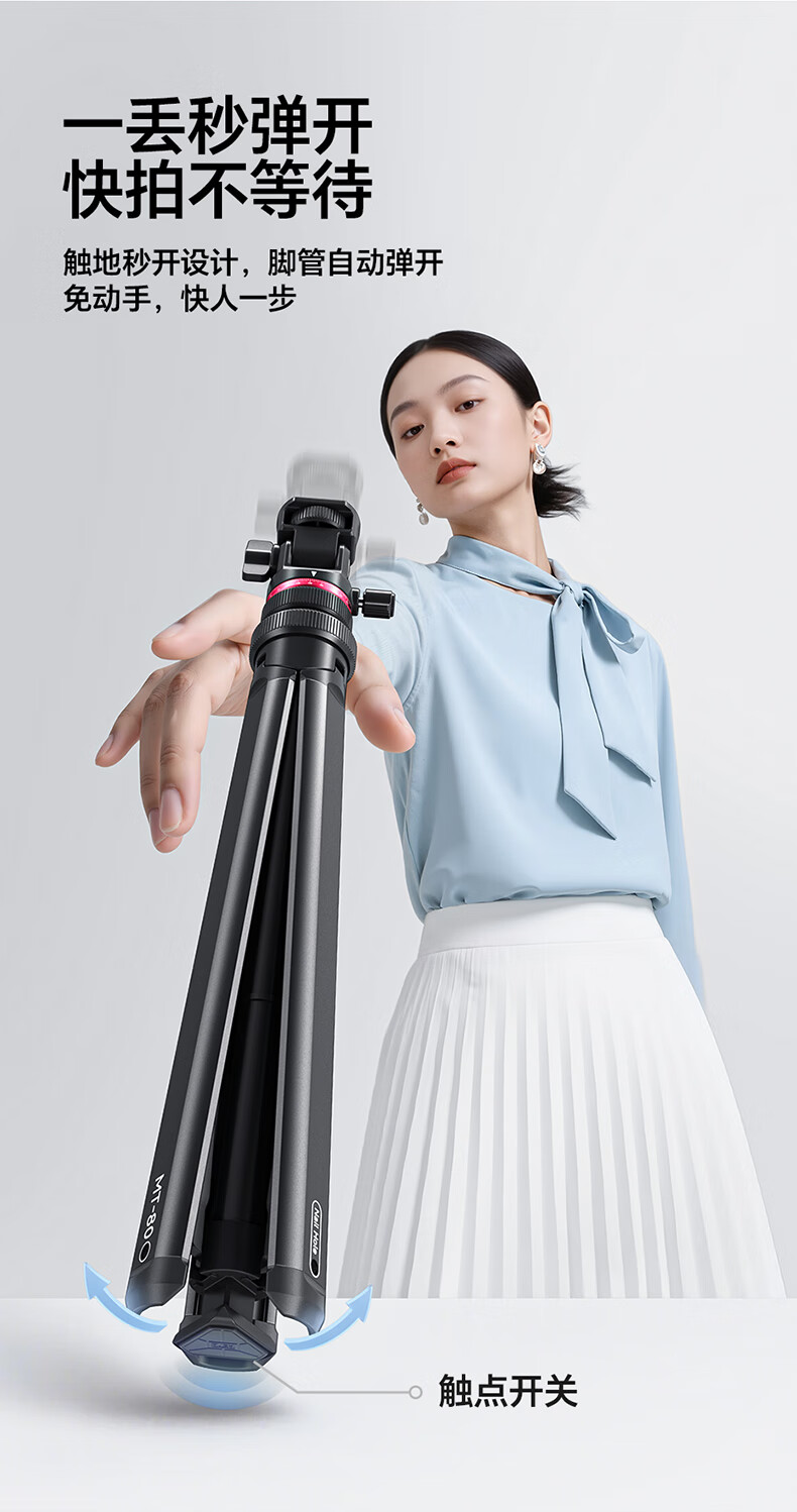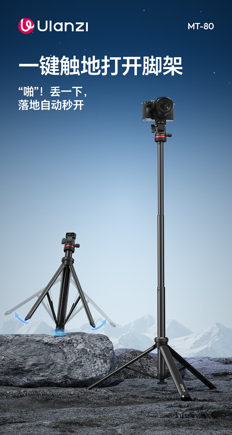 Ulanzi excellent basket MT-80 one-click opening tripod aluminum alloy portable light stand floor-standing fill light accessories bracket mobile phone camera micro-single photography photography throwing pole tripod