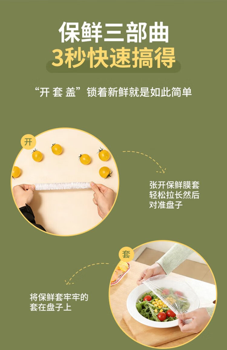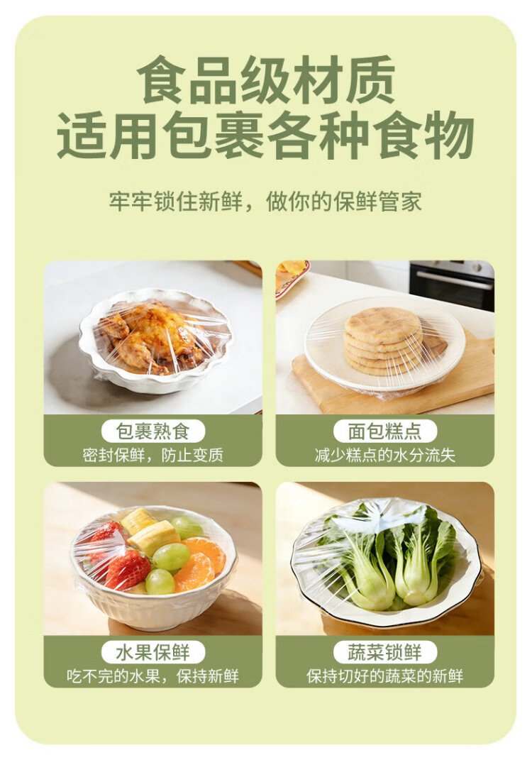 WOLSGIN disposable cling film cover, food-grade kitchen special thickened dust cover, universal elastic mouth, 250 pieces