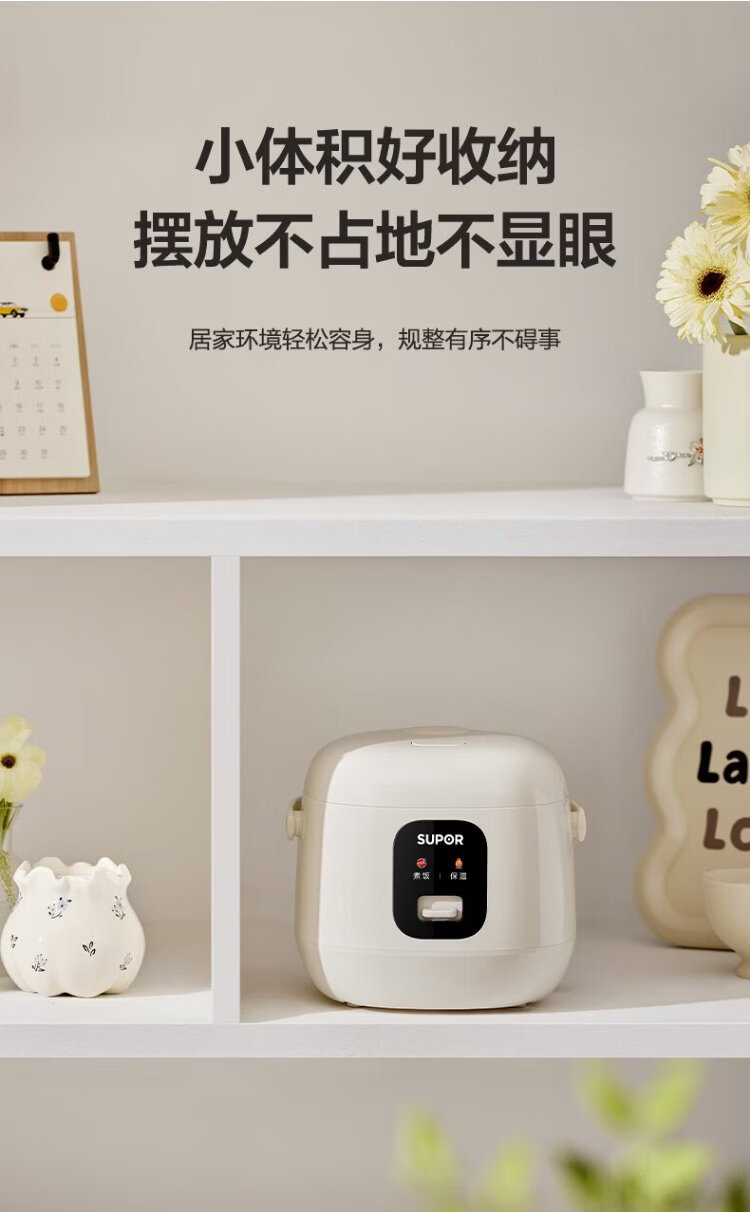 SUPOR small rice cooker for 1-2 people, 1.6 liter ceramic non-stick pot inner pot, quick cooking, millet porridge, steamed rice, dormitory smart multi-functional small mini micro-pressure rice cooker F16R71