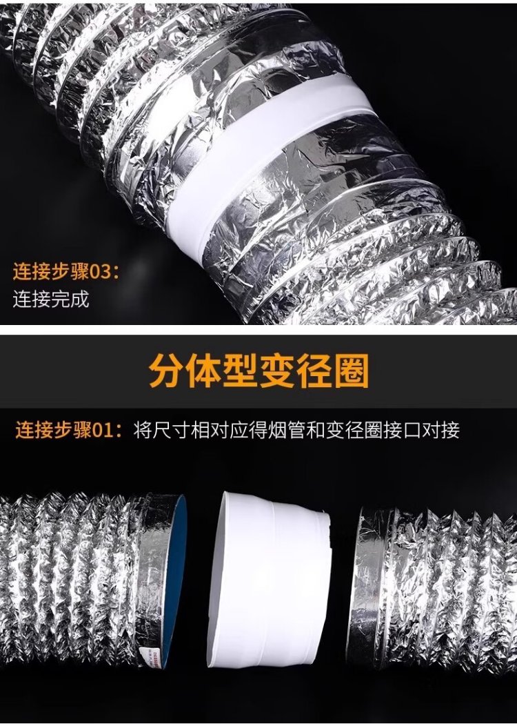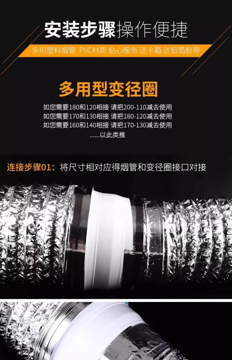 Taimus range hood exhaust pipe reducing ring exhaust pipe size conversion joint kitchen flue pipe check valve reducer sealing ring 80-200mm reducing ring + 2 meters aluminum foil tape