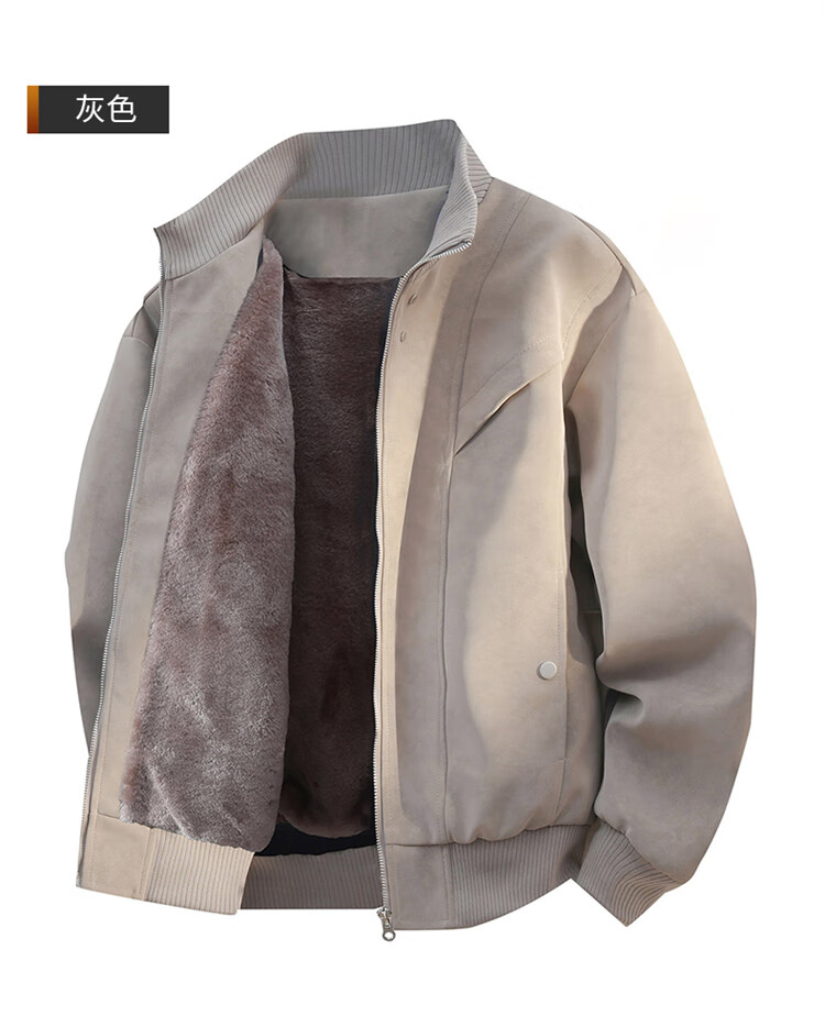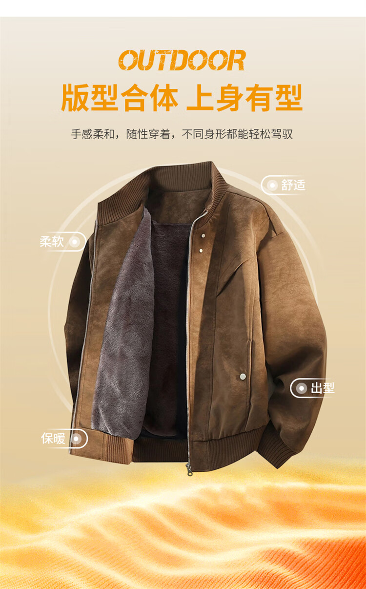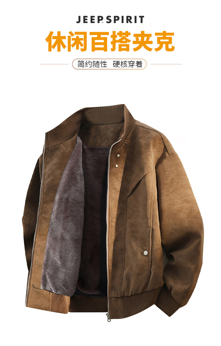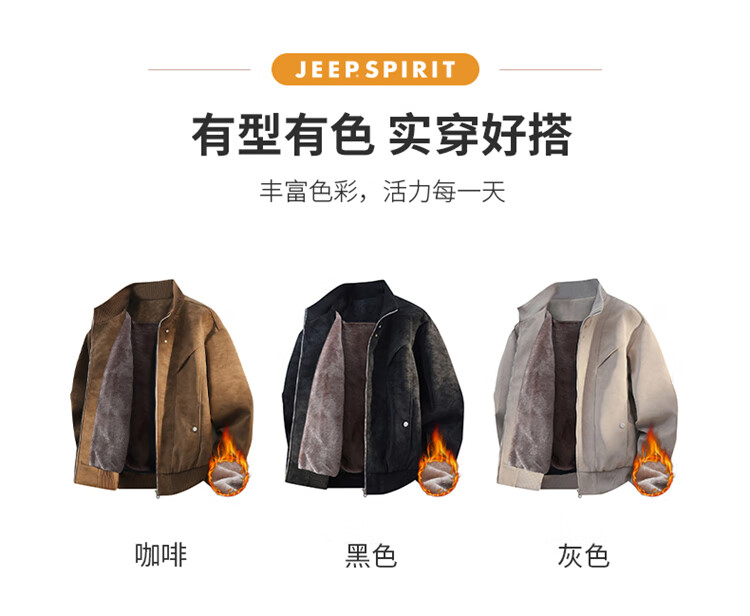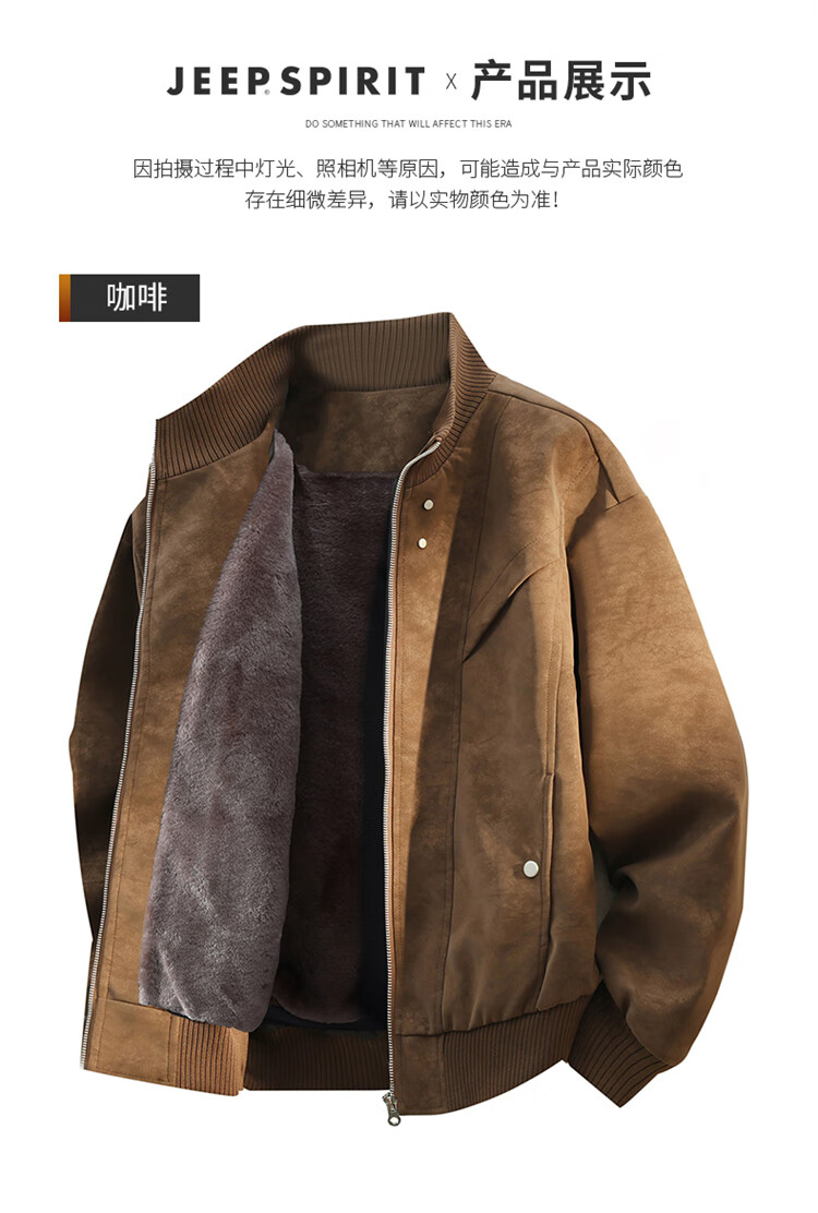 JEEP SPIRIT Jeep plus velvet thickened suede leather jacket men's autumn and winter high-quality jacket coffee plus velvet 2XL