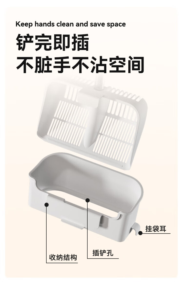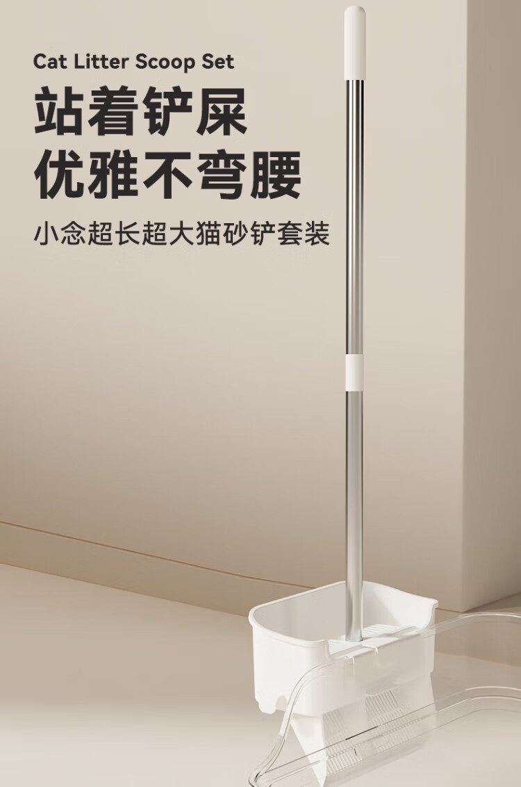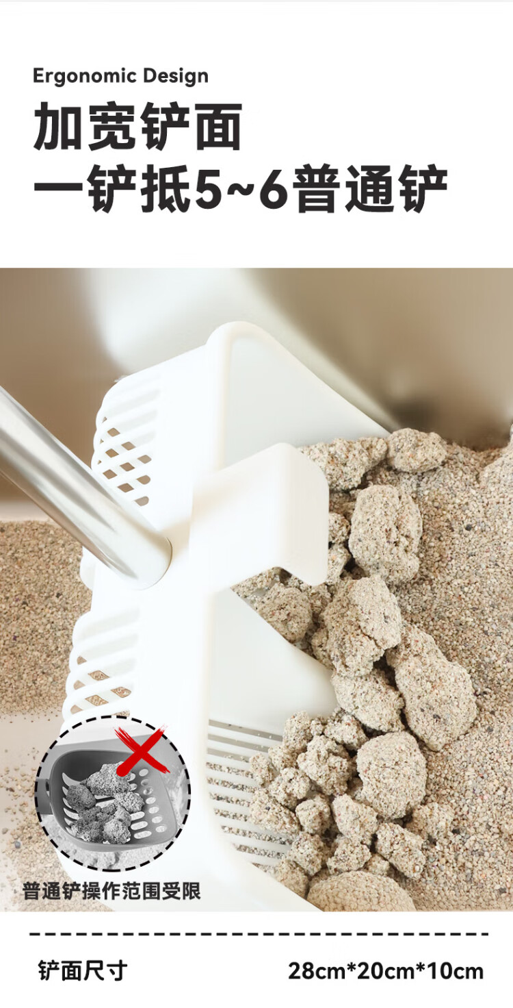 Leyoupai cat litter shovel, extra long handle, large capacity, labor-saving poop shovel, sand shovel artifact, multi-cat family large shovel with garbage basket