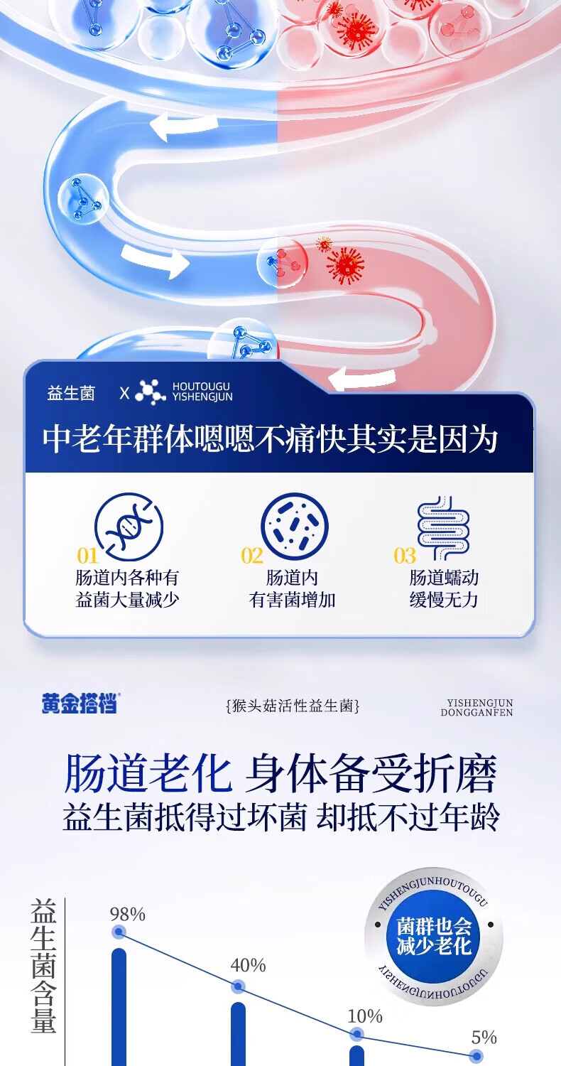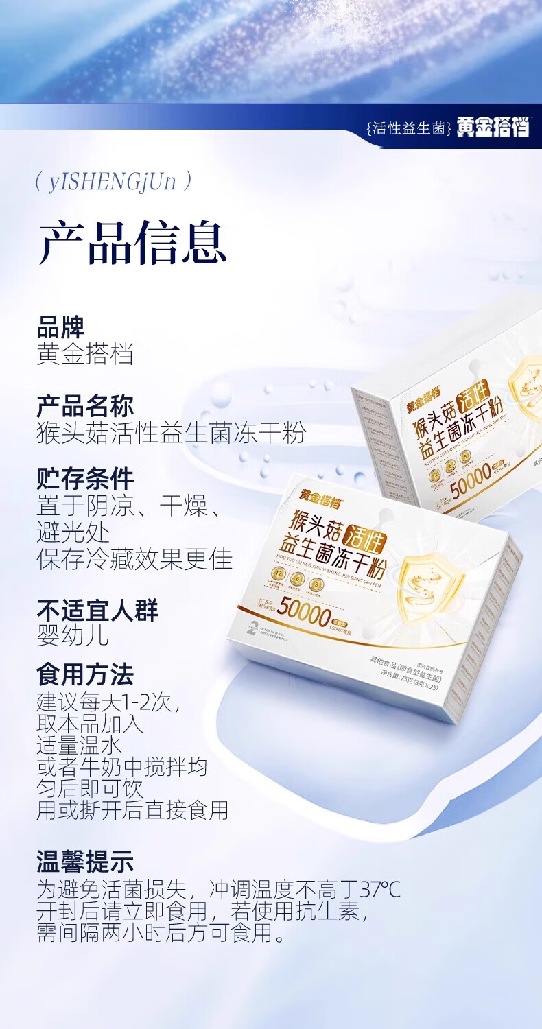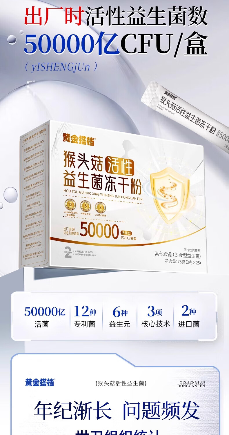 Golden partner active probiotic freeze-dried powder for middle-aged and elderly adults to regulate gastrointestinal tract constipation 500 billion flagship store