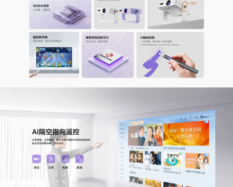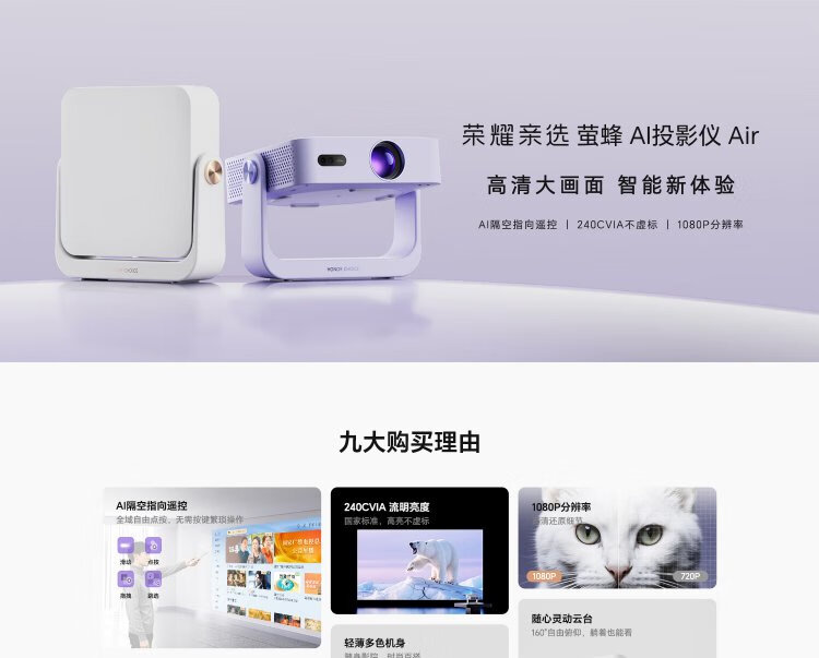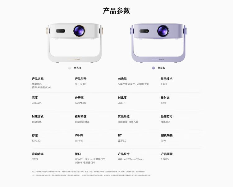 Honor Personally Selected AI Projector Air Monet Purple Projector Home Smart Home Theater AI Air Remote Control 1080P Resolution