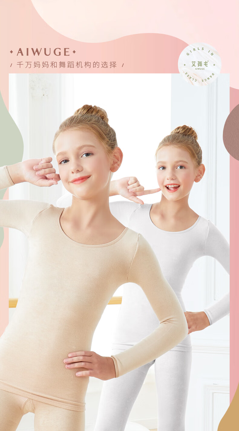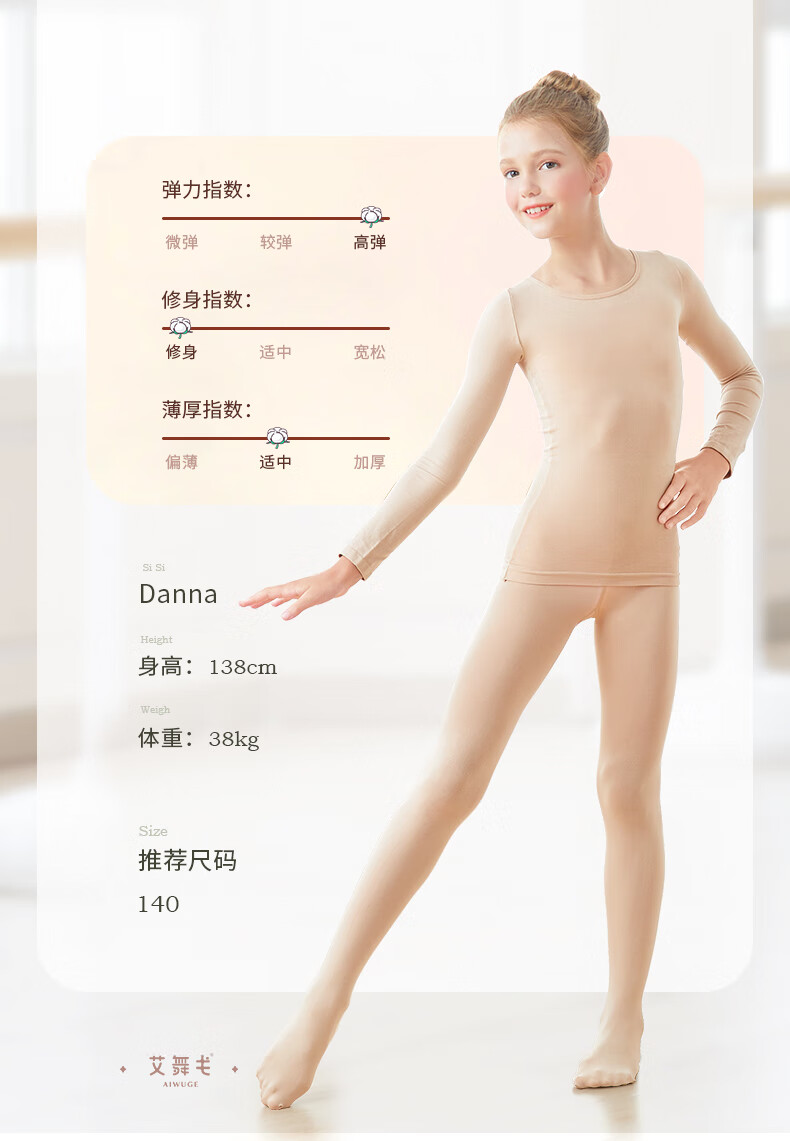 Aiwuge children's flesh-colored bottoming clothes autumn and winter thin velvet invisible underwear girls dance practice clothes daily performance white 120