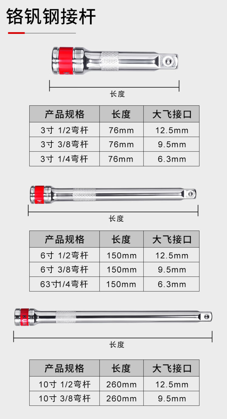 Cool Anteng Dafei Zhongfei Xiaofei sleeve extension rod afterburner rod connecting rod electric wrench extension sleeve connecting rod bent rod